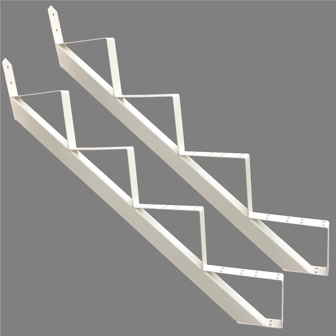 2 Treppenrahmen Weiss Stahl-Rahmen: 40 x 60mm Geschosshöhe 72cm / Stufen-Tiefe: 23cm Erste Stufen Höhe 15cm Mit jeder weiteren Stufe kann eine Geschosshöhe von 19cm überbrückt werden. Durchmesser der Bohrungen 8mm