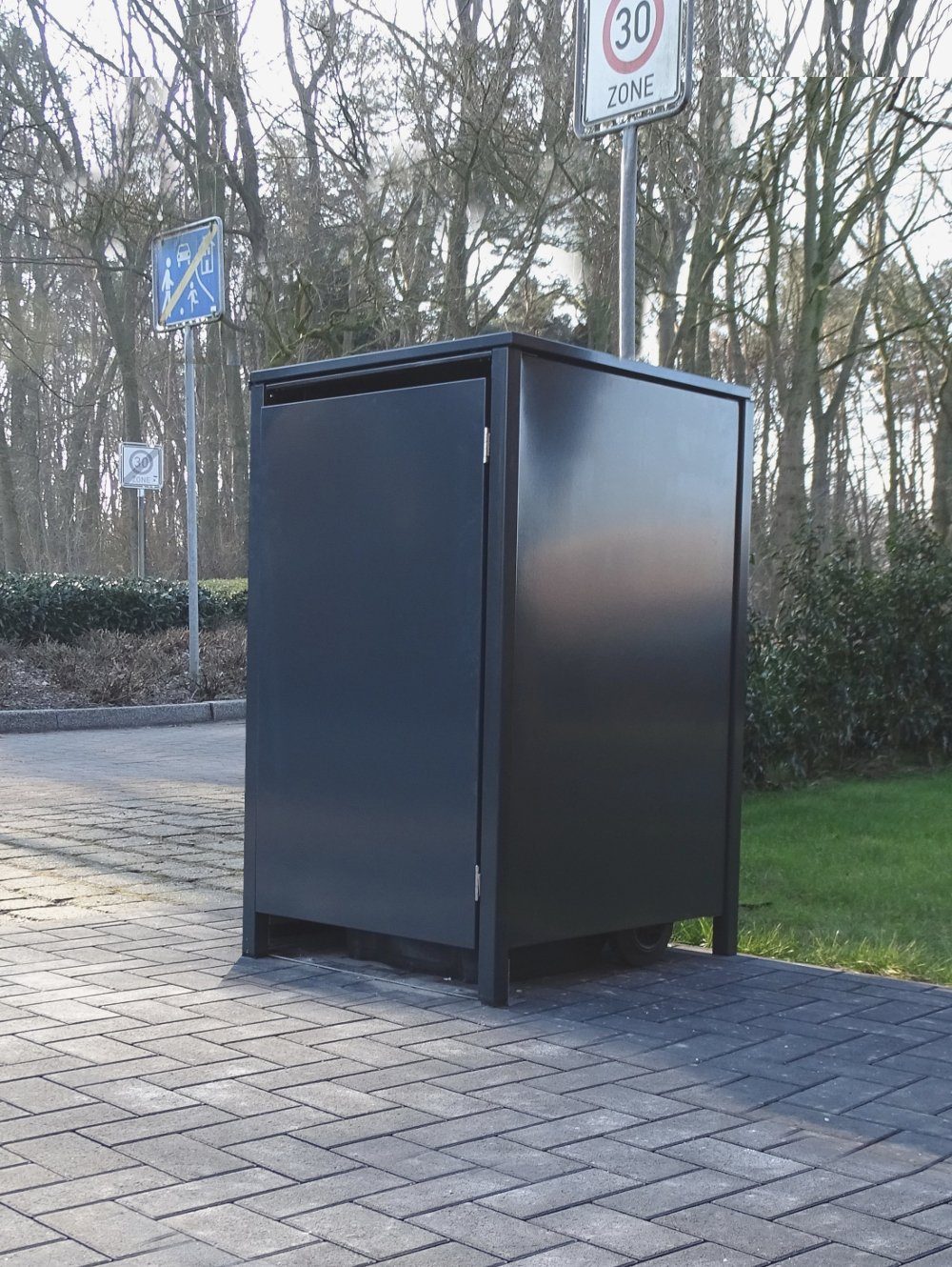 1 Mülltonnenbox ohne Stanzung Anthrazitgrau komplett in RAL 7016 für 120 Liter Mülltonnen