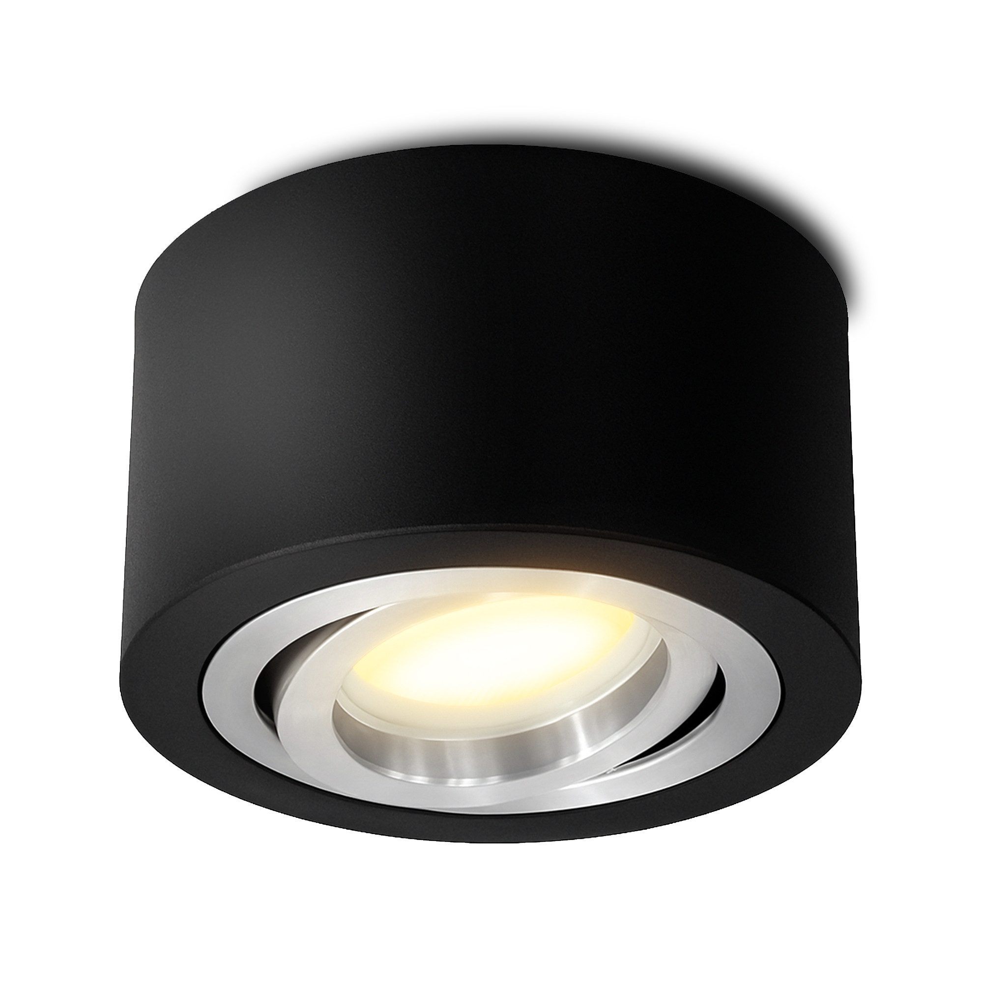 Lieferumfang | 1x Aufbauspot Deckenlampe schwarz rund schwenkbar-1x LED Leuchtmittel Modul 4W warmweiß-1x Schrauben und Dübel für Montage |