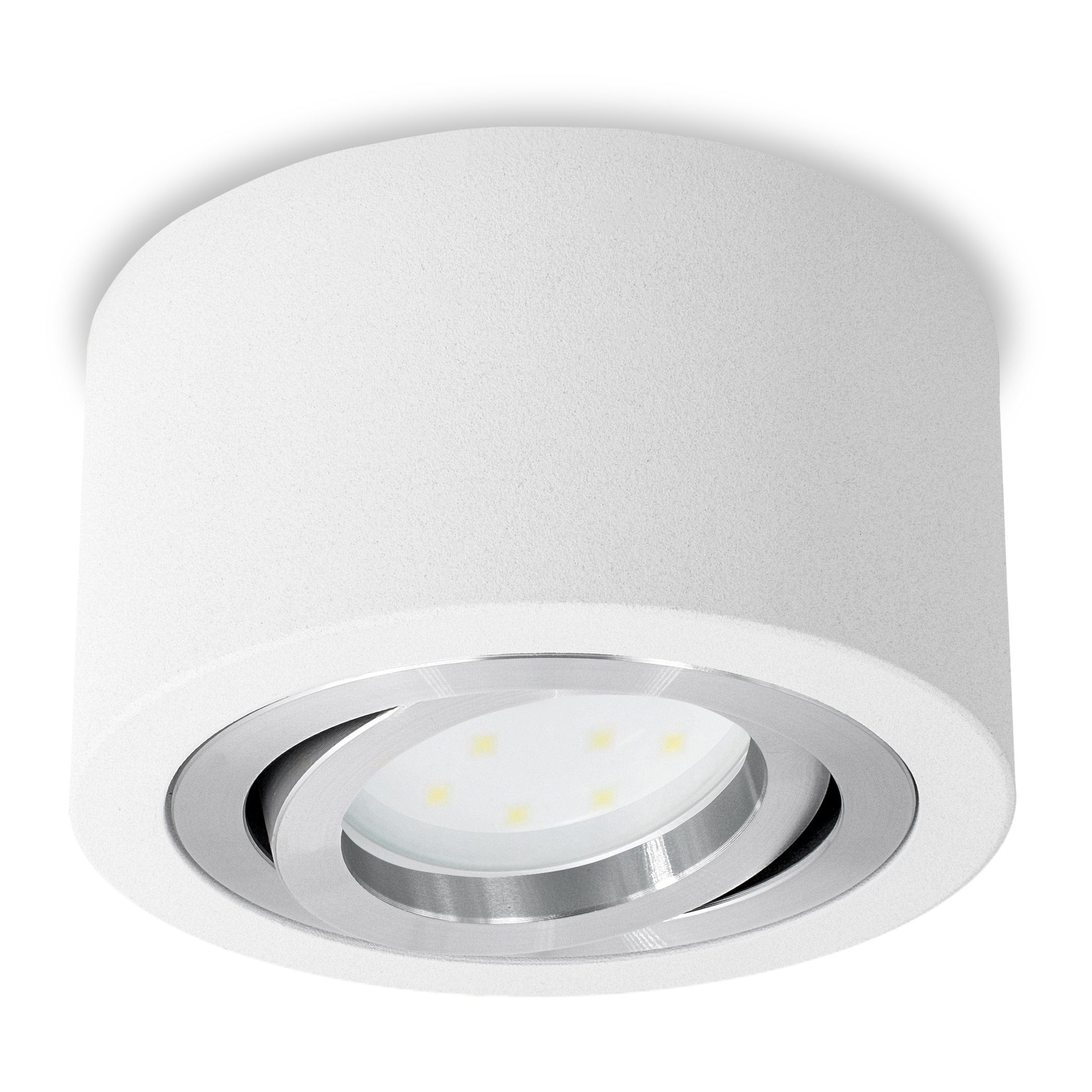 Wo aus baulichen Gründen Einbaustrahler nicht möglich sind, kommen diese Deckenstrahler zum Einsatz. Extra Flach und ein schlichtes Design verbunden mit dem mitgelieferten LED Modul ergeben eine perfekte Kombi für Ihr Wohnzimmer, Schlafzimmer oder Büro. Dank der schwenkbaren Funktion des Spotlights kann der neutralweiße Lichtkegel nach Ihren Wünschen ausgerichtet werden.