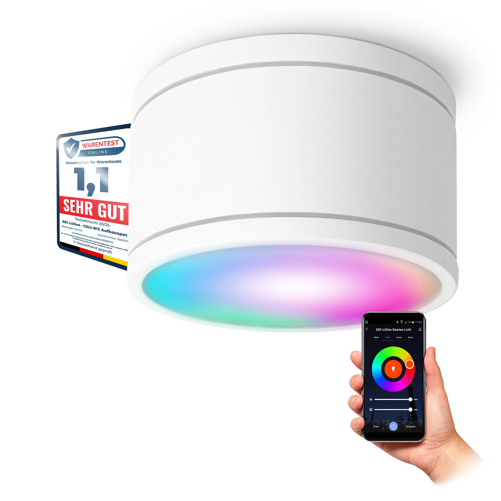 Lieferumfang | 1x Aufbaustrahler CELI-WX weiß-1x LED Smart GX53 Lampe-1x Montage-Material |
