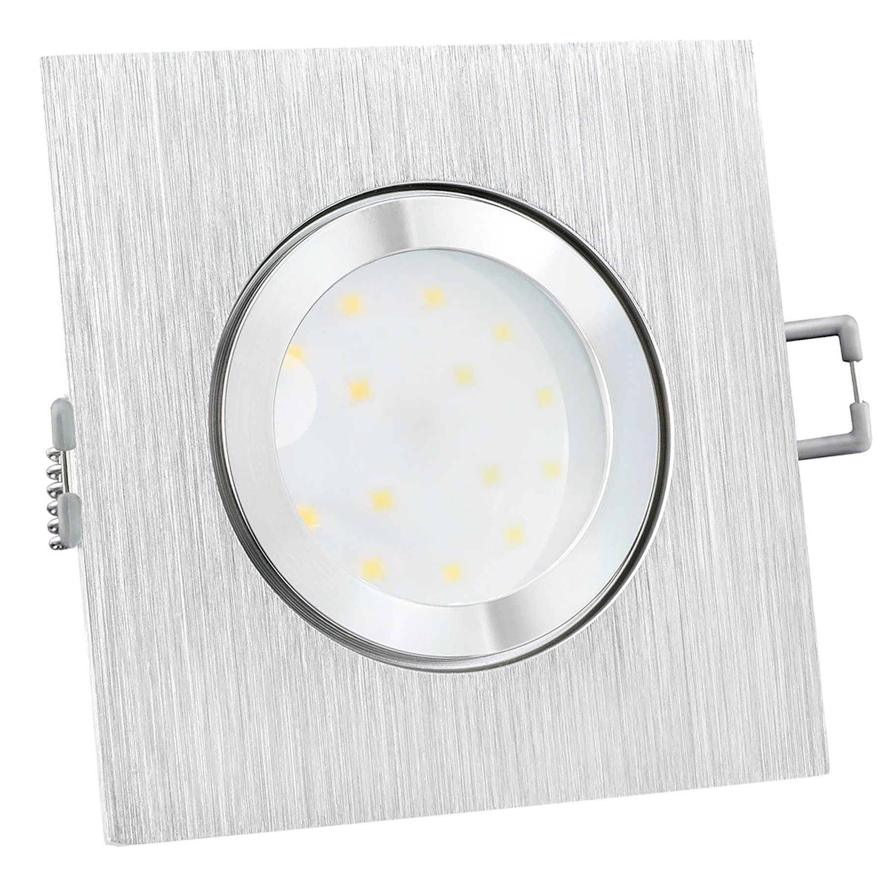 Lieferumfang | QW-2 Einbaustrahler Alu gebürstet, IP44, starr-fourSTEP dim FM-2 inkl. 20cm Anschlusskabel, Lichtfarbe neutral weiß, 110° Abstrahlwinkel- |