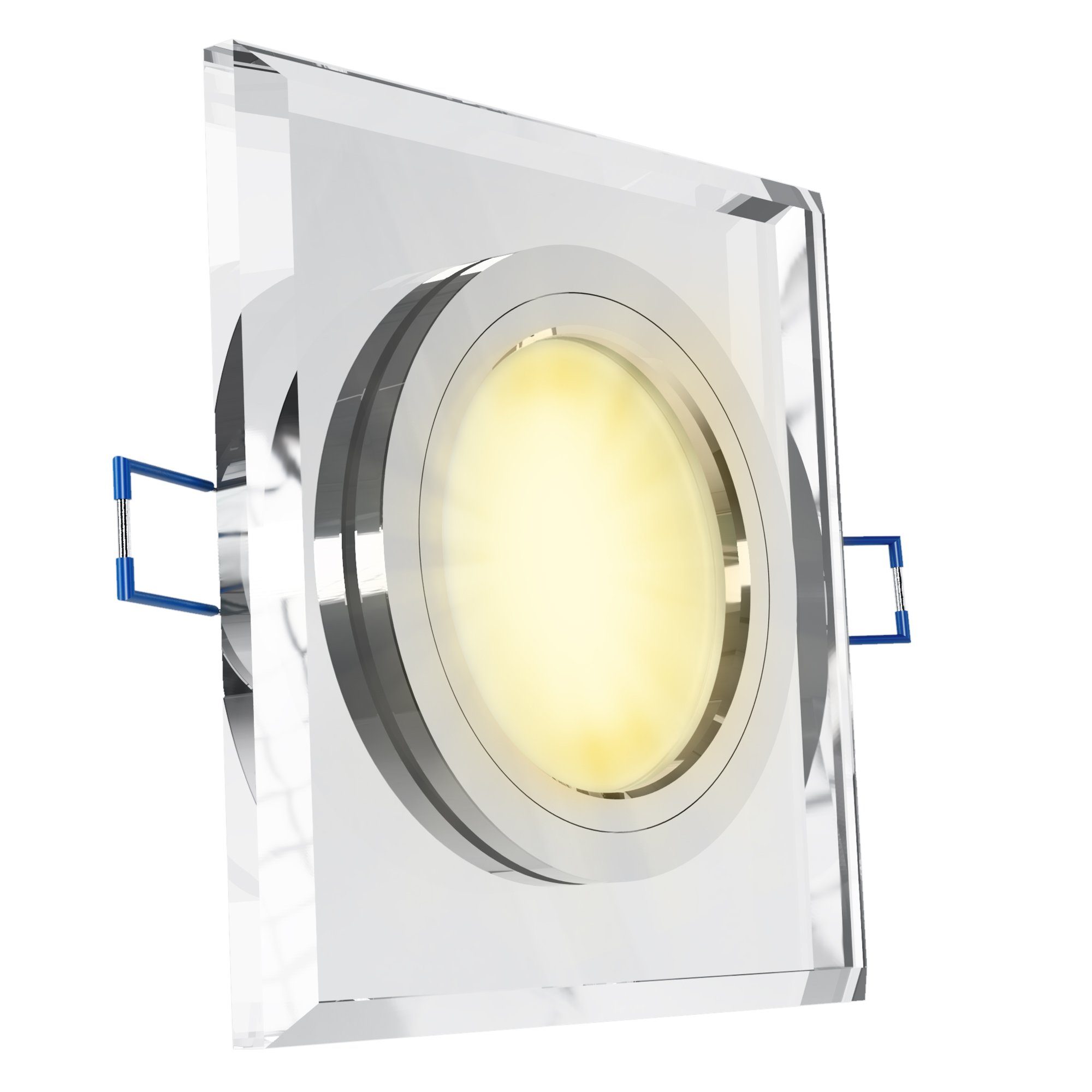 Lieferumfang | 1x Glas Einbaustrahler klar quadratisch-1x LED-Modul Leuchtmittel- |