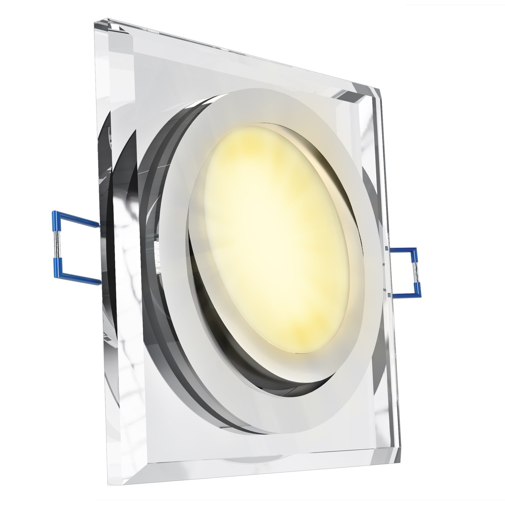 Lieferumfang | 1x Glas Einbaurahmen eckig schwenkbar-1x LED Modul 5W warmweiß dimmbar- |