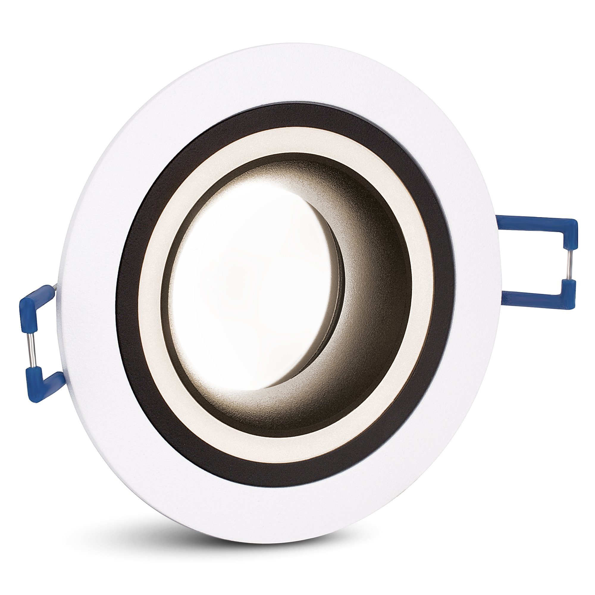 Was den Einbaustrahler Matapo zu etwas Besonderem macht: Neben dem hellen Licht, das aus der Mitte des Spots kommt, verfügt die Leuchte über einen passiven Lichtring. Dieser Ring sorgt für einen zusätzlichen, dezenten Lichteffekt und verleiht dem Einbauspot das gewisse Etwas. Das mitgelieferte Leuchtmittel ist hierzu ausreichend. Es werden keine zusätzlichen LEDs oder Bauteile benötigt.