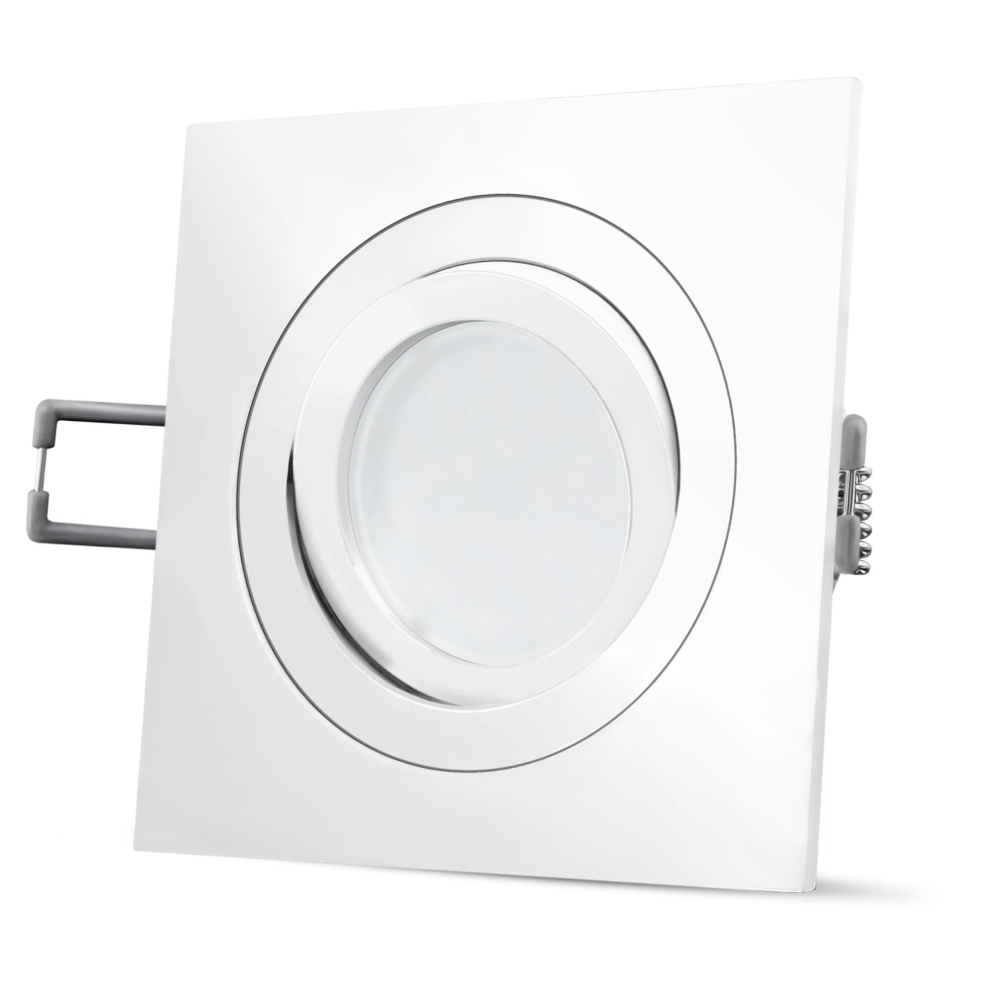 Lieferumfang | QF-2 Einbaustrahler weiß schwenkbar-LED GU10 Milky 4W warmweiß-GU10 Fassung mit Anschlussleitung |