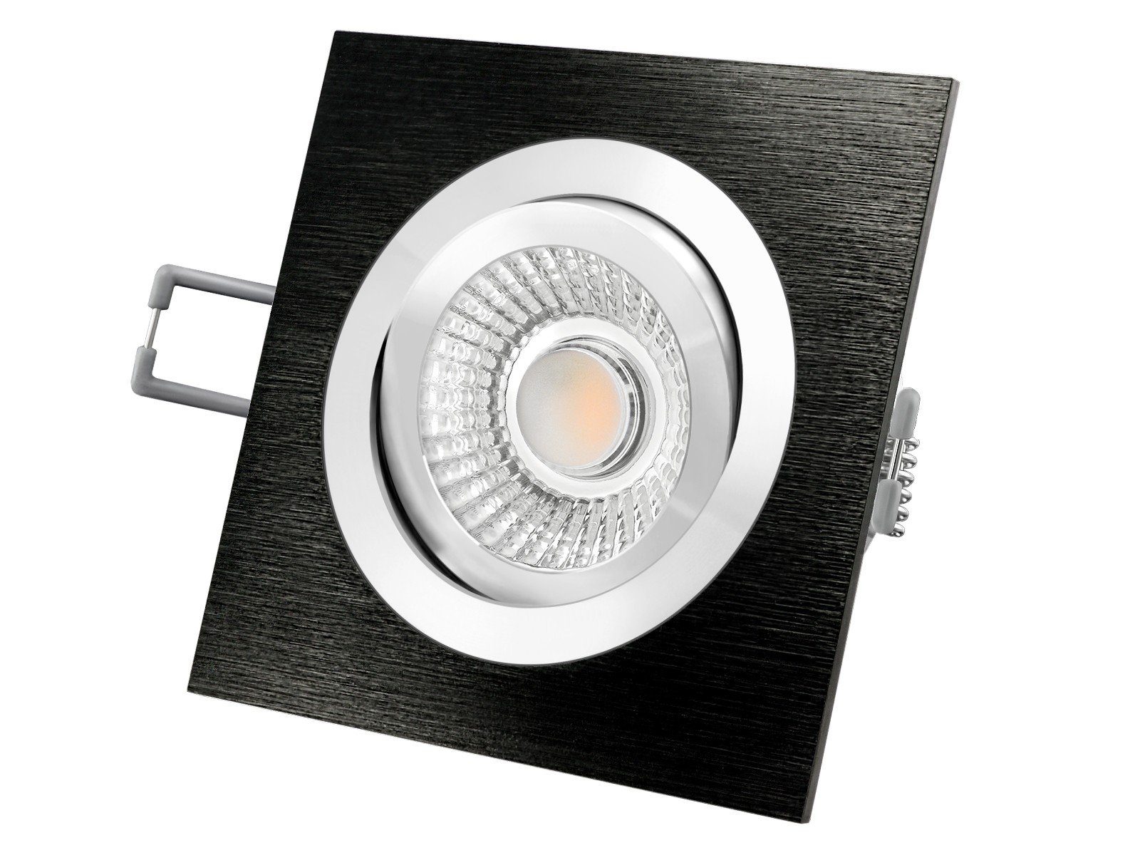 Lieferumfang | 1x QF-2 Einbaustrahler Alu schwarz, schwenkbar-1x LED-Modul 6 Watt, 400 Lumen, dimmbar, 2700 Kelvin warmweiß, 36° Abstrahlwinkel- |