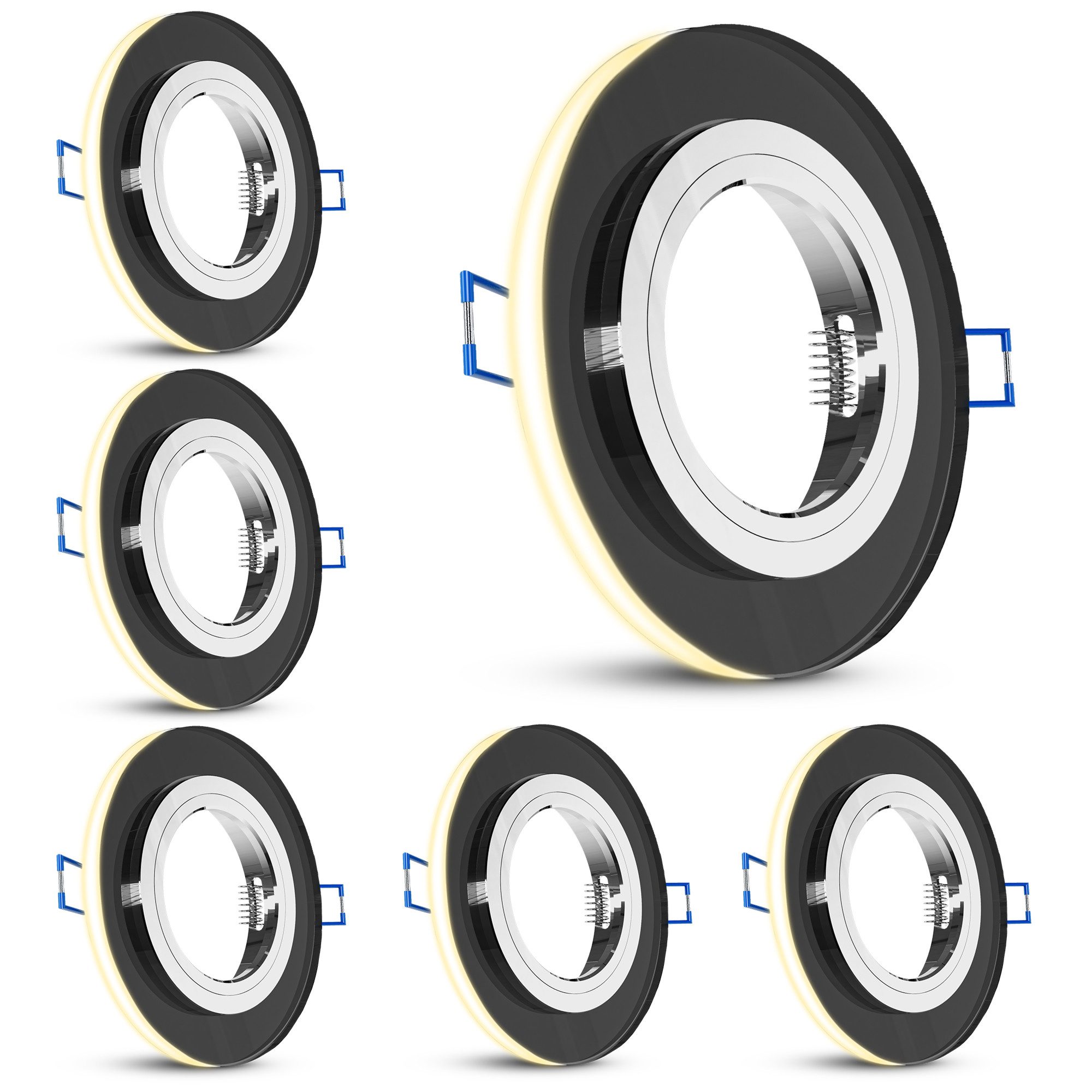 Das Besondere an dieser LED Einbauleuchte ist der integrierte indirekte LED Ring. Die festverbauten LEDs sind so positioniert, dass das Licht seitlich an die Decke gestrahlt wird, was ein weiches, indirektes Licht erzeugt. Dieser warmweiße, passive Lichteffekt schafft eine angenehme und gemütliche Atmosphäre, ideal für entspannte Abende und gesellige Zusammenkünfte.