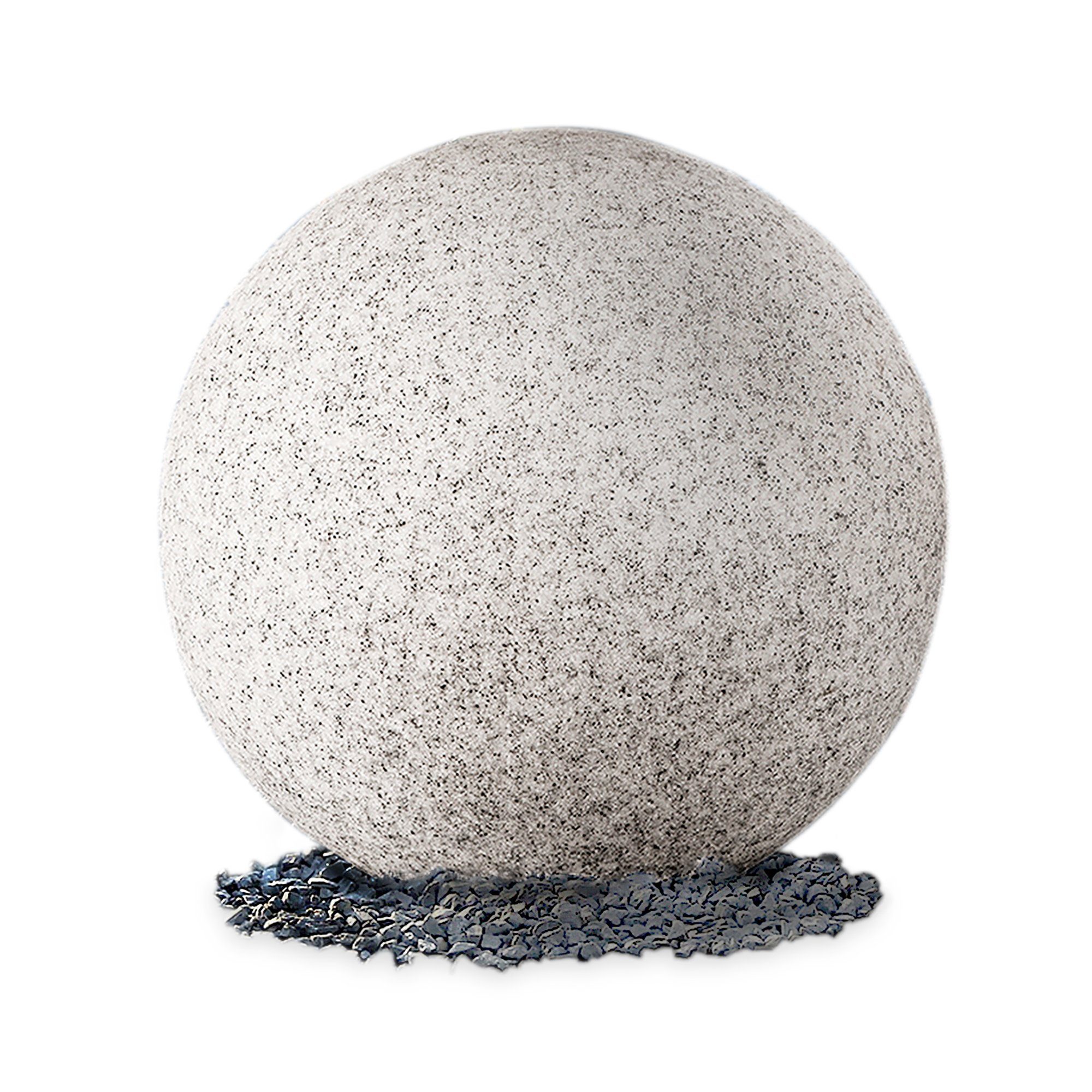 Die Optik erinnert dabei an hellen Granit. Eine universelle Farbe und Oberfläche erlauben es also, diese Leuchtkugel in jeglicher Garten-Umgebung einzusetzen.