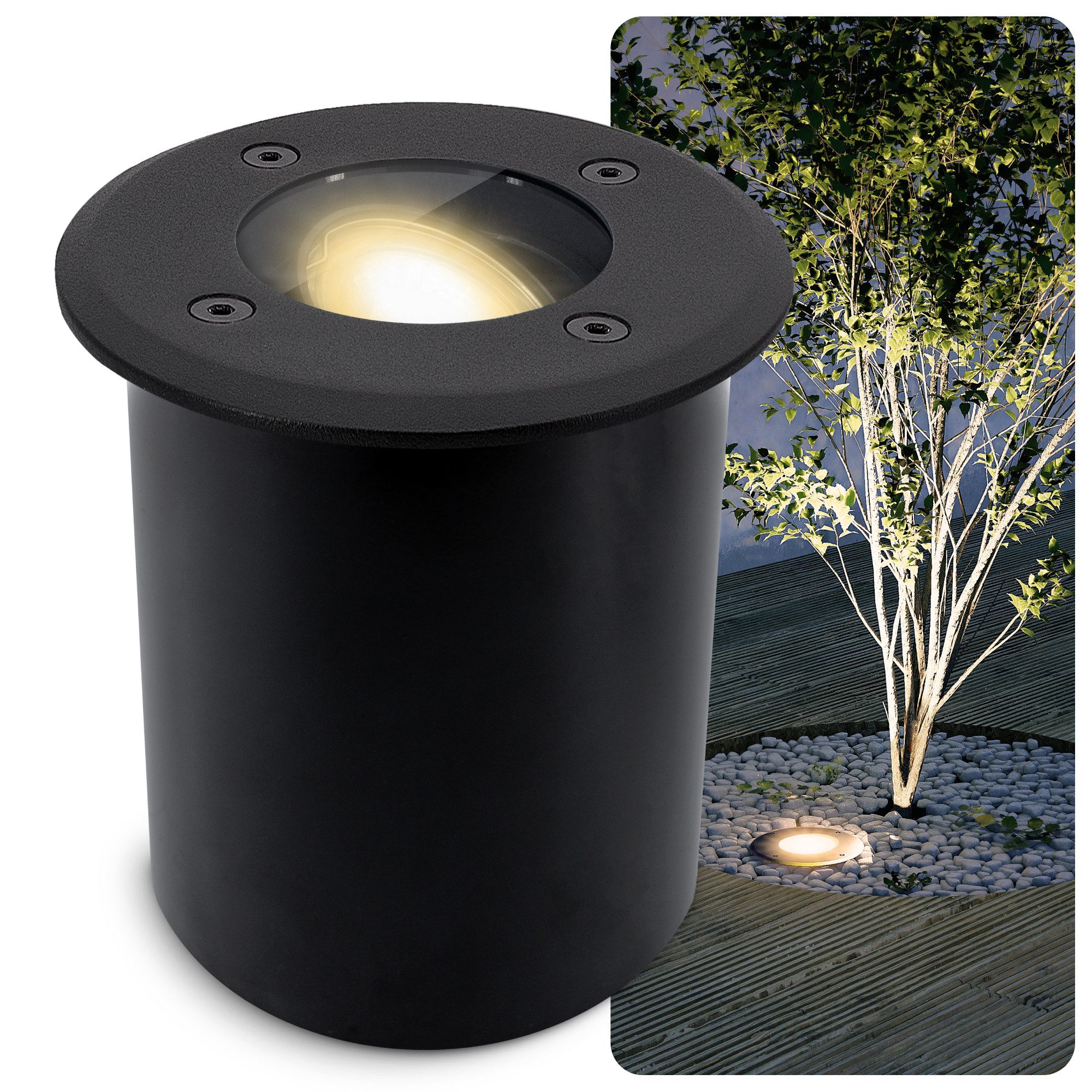 Entdecken Sie unseren vielseitigen Bodeneinbaustrahler für den Innen- und Außenbereich, der dank seiner Schutzart IP67 perfekt für jede Wetterlage geeignet ist. Der hochwertige Bodenspot trotzt Staub, Schmutz, Regen und Schnee und kann als Wegeleuchte, Eingangsbeleuchtung, Terrassenstrahler oder Gartenlicht eingesetzt werden. Die robuste Bodenbeleuchtung ist nicht nur wetterfest, sondern auch rostfrei, was eine langjährige Nutzung ohne Qualitätsverlust verspricht. Mit der matt schwarzen Front fügt sich dieser Bodenstrahler nahtlos in die Umgebung ein und sorgt für eine stilvolle Bodenbeleuchtung, die jede Außenfläche aufwertet. Der moderne LED Bodenspot kann in verschieden Untergründe wie z. B. Rasen, Kies oder Rindenmulch eingebaut werden.