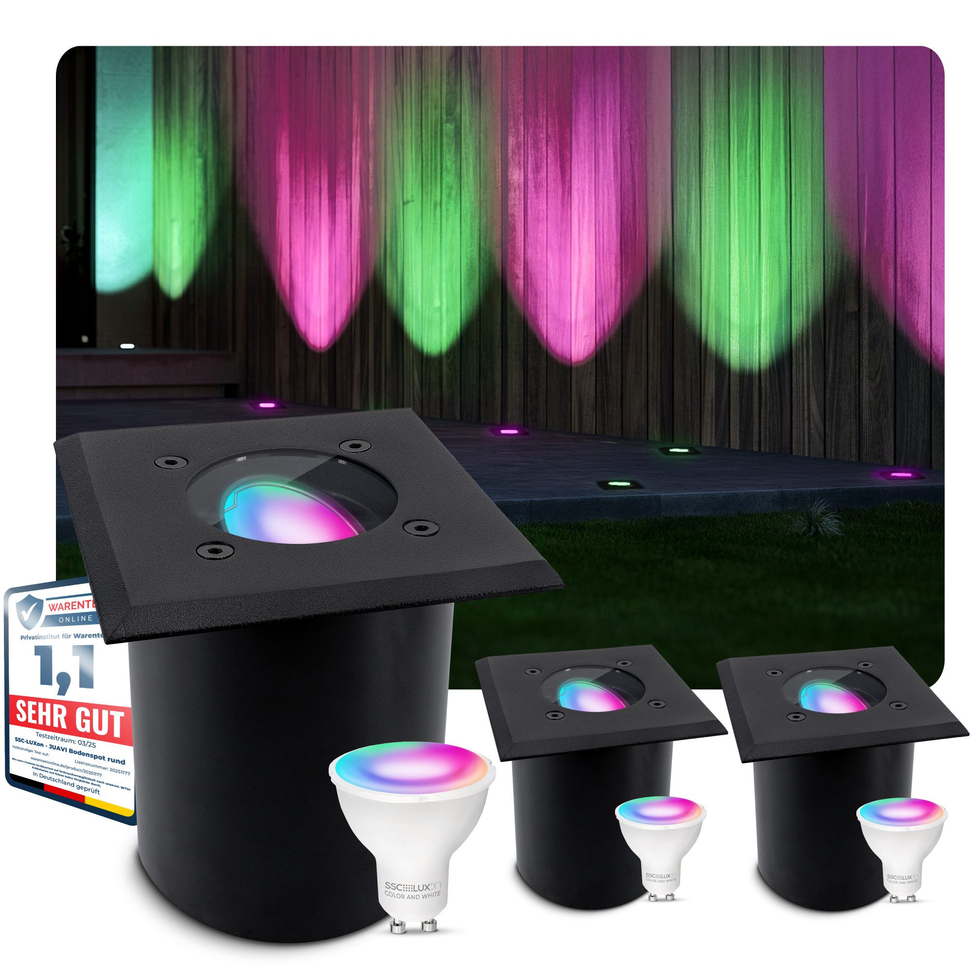 Im Lieferumfang des robusten Bodenstrahlers ist ein Smart Home GU10 LED Leuchtmittel enthalten, das flexibel ausgetauscht werden kann. Das Licht des Bodenspots leuchtet nicht nur in warmweiß bis tageslichtweiß, auch RGB-Farben sind möglich. Kreieren Sie eine fröhliche Lichtstimmung bei der nächsten Gartenparty oder beleuchten Sie Ihre Terrasse mit einem gemütlichen Licht zum Entspannen am Abend. Die Boden Einbauleuchte wird per App oder Sprache (Amazon Alexa ab 2. Generation Echo, Siri oder Google Home) gesteuert, einfach und komfortabel. Zur Verbindung mit dem Smartphone wird nur WLAN (2,4 GHz) und die kostenfreie App „Smart Life - Smart Living“ benötigt.