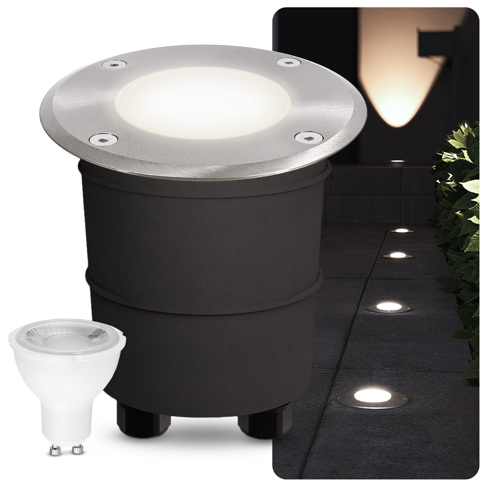 Lieferumfang | 1 Stück Bodeneinbaulampe MARNE rund-1 Stück LED Leuchtmittel GU10 dimmbar 5W neutralweiss- |