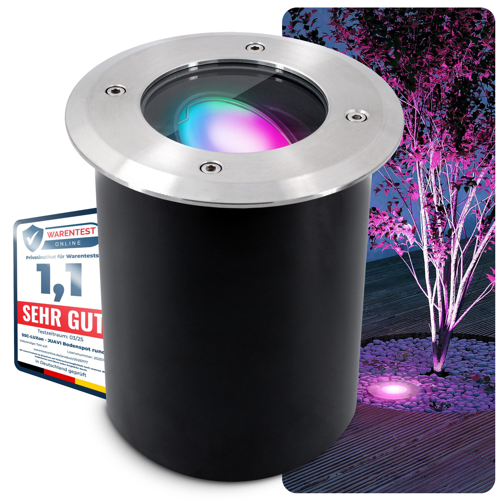 Bei LED Bodeneinbauleuchten stehen Licht & Funktionen im Vordergrund. Der optisch schlichte und runde Bodenstrahler JUAVI wird durch die wechselbare Glaseinlage, der Schwenkfunktion und der Durchgangsverdrahtung (Anschluss mehrerer Leuchten in Reihe) zur vielseitigen Bodenbeleuchtung in Garten, auf der Terrasse oder der Einfahrt.