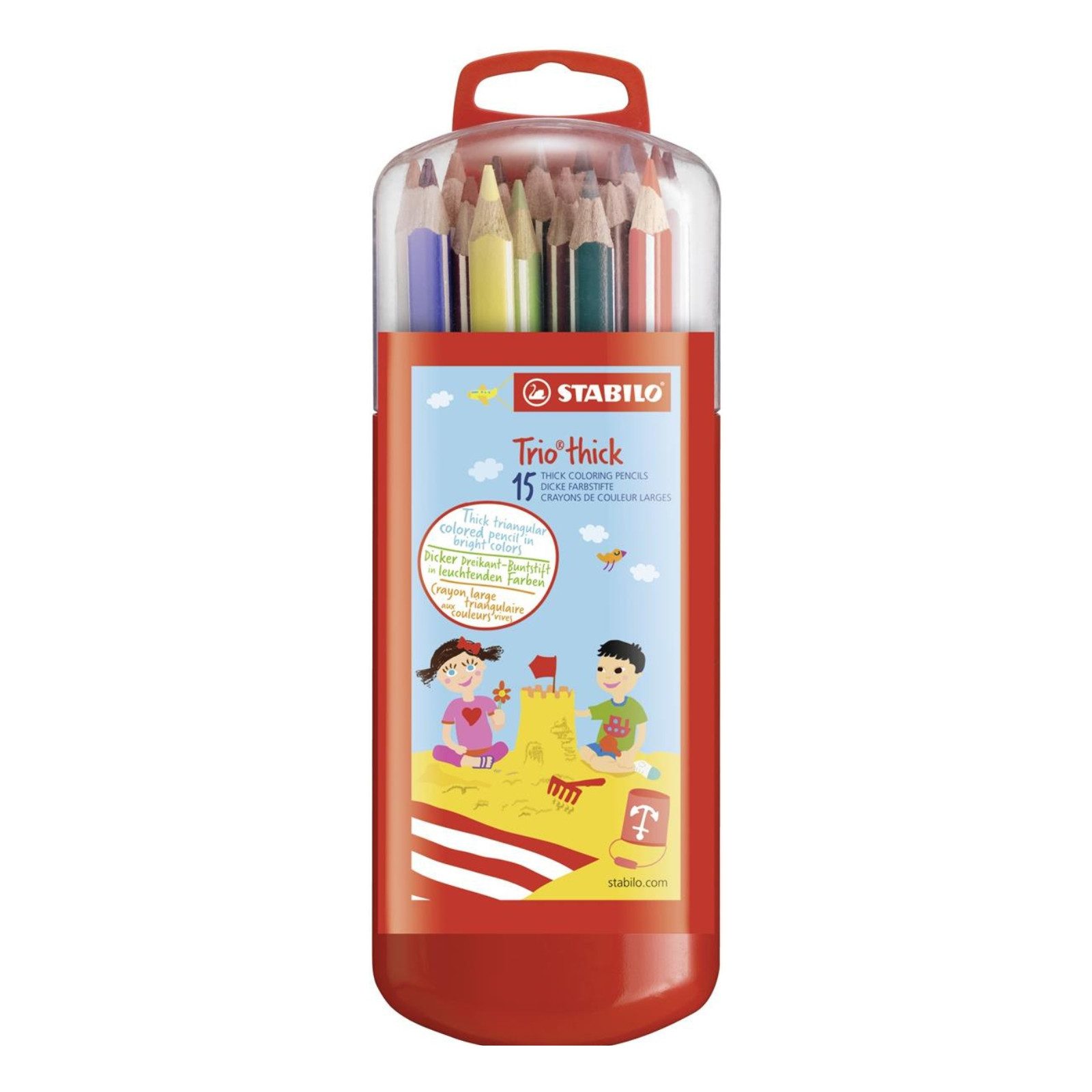 Mit der STABILO Trio dick Dreikant-Buntstift - 15er Box erhältst du hochwertige Farbstifte, die speziell für die kleinen Künstler unter uns entwickelt wurden. Durch die besondere Dreikant-Form liegen diese Buntstifte hervorragend in der Hand, was sie ideal für Vorschulkinder und Grundschüler macht. Die 4,2 mm dicke Mine ermöglicht es, große Flächen mühelos auszumalen und überzeugt durch ihre außergewöhnliche Robustheit. Selbst wenn der Stift einmal zu Boden fällt, bleibt die Mine intakt und bricht nicht sofort.