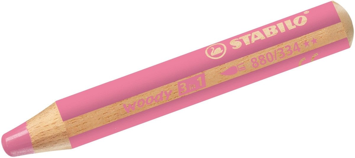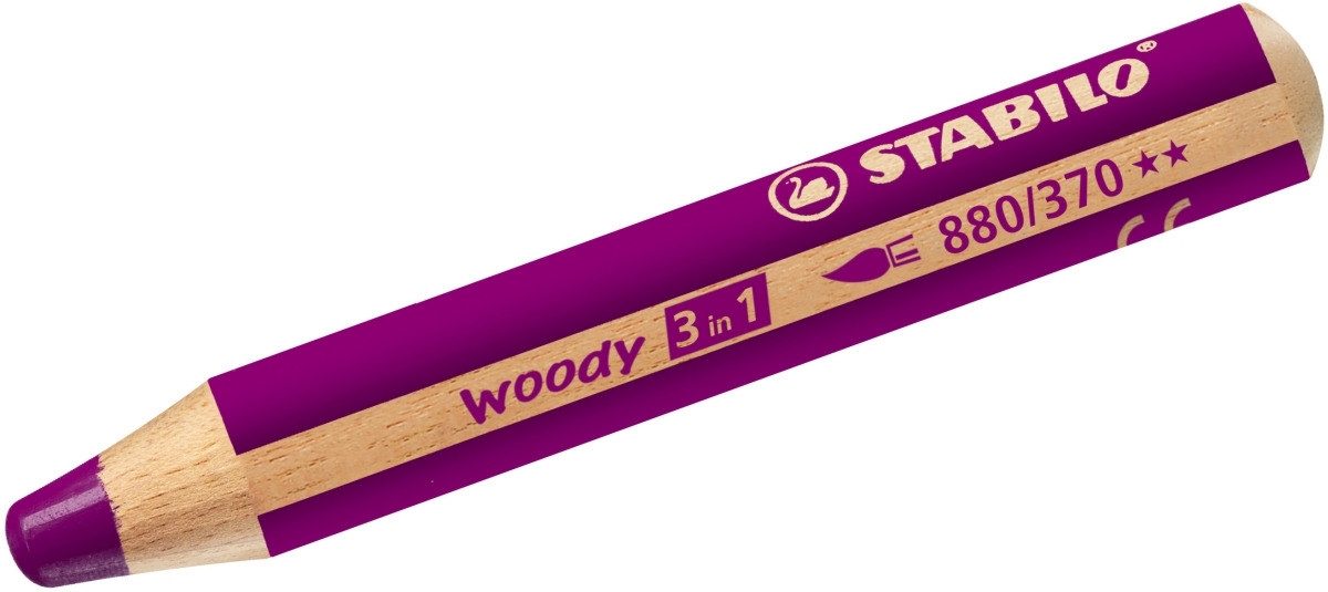 Das kunterbunte Multitalent Buntstift, Wasserfarbe und Wachsmalstift in Einem! Kinder lieben ihn, denn der STABILO woody 3 in 1 verschönert Fensterscheiben, Brotdosen, Spiegel, CD´s, Tafeln und nachtürlich Papier, Pappe und Kartons. Eltern bleiben entspannt, denn die Farbe lässt sich von Glasflächen ganz leicht wieder abwaschen. Die dicke Mine bietet extralangen Malspaß und beinhaltet achtmals so viel Farbe wie ein normaler Buntstift! Durch seine Form liegt der STABILO woody 3 in 1 perfekt in der Kinderhand und hält mit seiner bruchsicherer Mine auch wilden Malabenteuern stand. Malt auf vielen Oberflächen! (Aquarell-)Papier Satter Abstrich! Für die ersten Malversuche auf weißem Papier ist der STABILO woody 3 in 1 perfekt geeignet. Außerdem ist er aquarellierbar. Dunkle Oberflächen Hohe Deckkraft! Dunkle Oberflächen sind für das Multitalent kein Problem. So sind dem Malspaß keine Grenzen gesetzt. Glatte Oberflächen Leicht abwaschbar! Von Glas lässt sich die Farbe des STABILO woody 3 in 1 ganz einfach mit ein bisschen Wasser wieder abwischen. Karton Farbintensiv! Auch auf Karton malt der STABILO woody 3 in 1 dank seiner hohen Deckkraft.