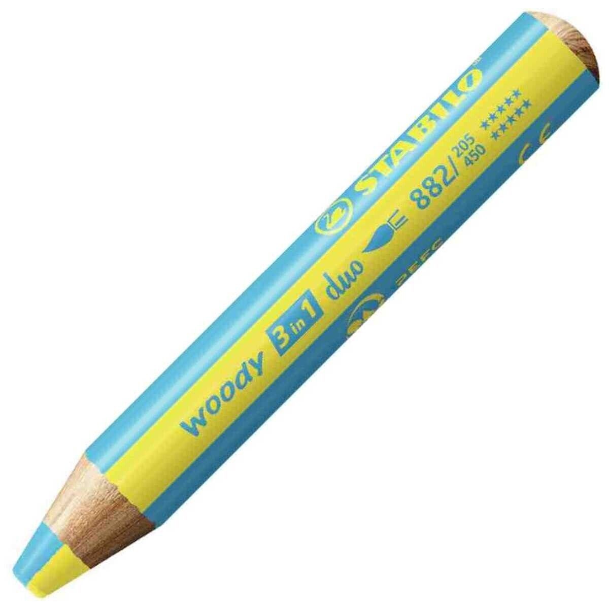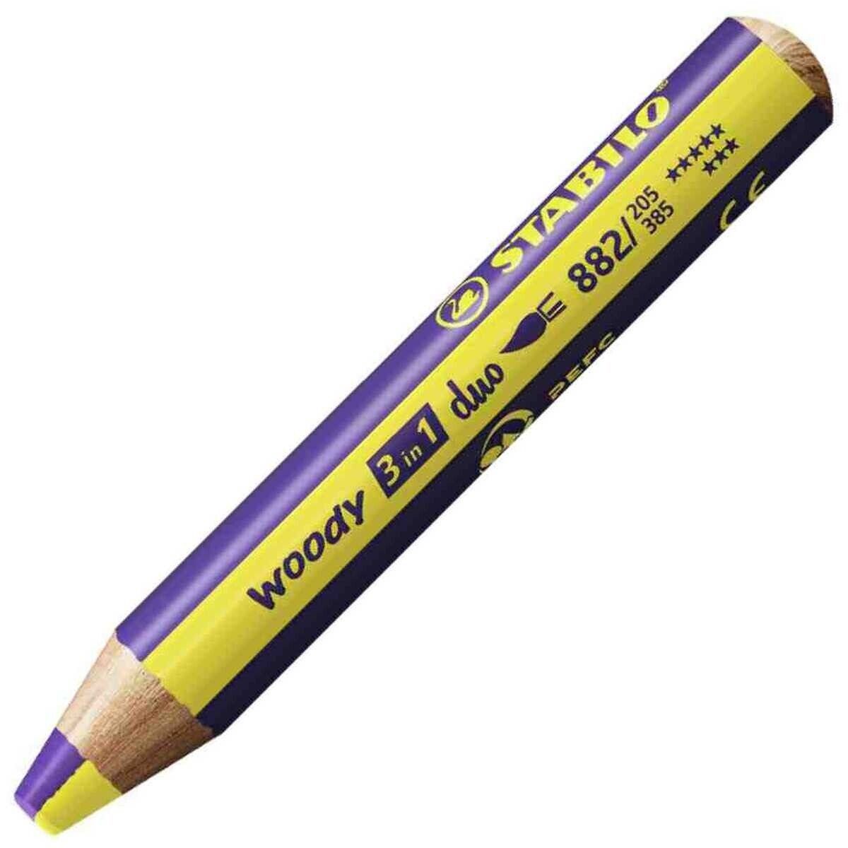 STABILO woody 3 in 1 duo – Doppelte Kreativität, grenzenloser Spaß! Der STABILO woody 3 in 1 duo ist der vielseitige Stift, der doppelt so viel Farbe und Möglichkeiten bietet! Egal ob Malen, Zeichnen oder sogar Aquarellieren – dieser Stift vereint alles in einem und ist damit ideal für kleine und große Künstler. Mit zwei Farben in einem Stift wird jede Zeichnung noch lebendiger und kreativer! 3-in-1-Funktion: Buntstift, Wasserfarbe und Wachsmalkreide in einem – für vielseitiges und kreatives Arbeiten. Zwei Farben in einem Stift: Jede Seite bringt eine neue Farbwelt, die Ihre Kunstwerke noch farbenfroher und lebendiger macht. Für alle Oberflächen: Der woody malt mühelos auf Papier, Glas, Holz und vielen weiteren Materialien – einfach abwischbar von glatten Flächen. Extra dicke Mine: Besonders hohe Farbbrillanz und deckende Ergebnisse, die Kinder und Erwachsene gleichermaßen begeistern. Umweltfreundlich: Hergestellt aus hochwertigem Holz und entwickelt mit Fokus auf Langlebigkeit und Sicherheit. Der STABILO woody 3 in 1 duo – doppelte Farbpower für grenzenlose Kreativität auf jedem Untergrund! (Aquarell-)Papier Satter Abstrich! Für die ersten Malversuche auf weißem Papier ist der STABILO woody 3 in 1 perfekt geeignet. Außerdem ist er aquarellierbar. Dunkle Oberflächen Hohe Deckkraft! Dunkle Oberflächen sind für das Multitalent kein Problem. So sind dem Malspaß keine Grenzen gesetzt. Glatte Oberflächen Leicht abwaschbar! Von Glas lässt sich die Farbe des STABILO woody 3 in 1 ganz einfach mit ein bisschen Wasser wieder abwischen. Karton Farbintensiv! Auch auf Karton malt der STABILO woody 3 in 1 dank seiner hohen Deckkraft. Doppelter Malspaß Der STABILO woody 3 in 1 duo hat eine hohe Deckkraft und Farbintensität - auch auf dunklen Papieren. Seine vielen Möglichkeiten und Techniken machen das Malen zum Abenteuer. Er ist in tollen Farbkombinationen erhältlich und hat einen satten, samtweichen Abstrich. Hergestellt wird er aus 100% FSC-zertifiziertem Holz.