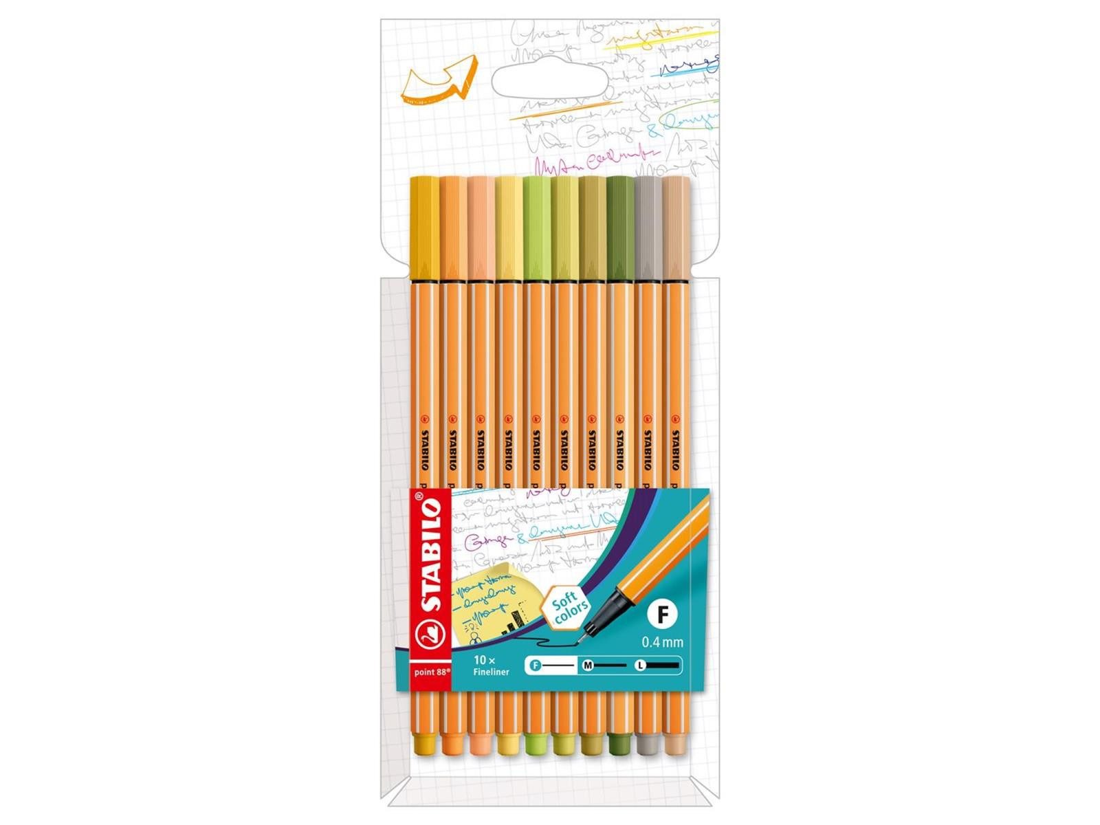 Das Set besteht aus 10 zarten Soft Colours, die sich hervorragend für kreative Arbeiten, Skizzen oder ausführliche Notizen eignen. Die Tinte auf Wasserbasis ist lichtbeständig und sorgt für kräftige Farben, die lange halten. Die praktische Kappe am Stiftende ist in der jeweiligen Schreibfarbe gehalten und lässt sich einfach aufstecken. Die Griffzone aus Kunststoff sorgt zudem für einen angenehmen Halt während des Schreibens.