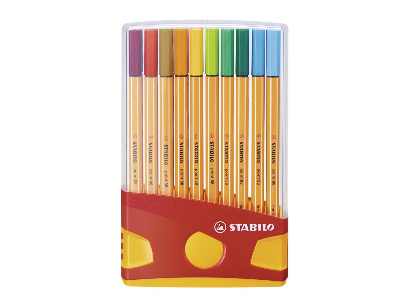 Der STABILO point 88 Fineliner in der praktischen 20er ColorParade ist Europas Fineliner Nr. 1. Mit seiner einzigartigen Sechskantoptik und dem ansprechenden Streifendesign ist er nicht nur ein nützliches Schreibwerkzeug, sondern auch ein echter Hingucker. Ausgestattet mit einer metallgefassten Spitze von 0,4 mm eignet sich dieser Fineliner hervorragend für präzise Linien und feine Details. Du kannst ihn problemlos für Schablonen verwenden.
