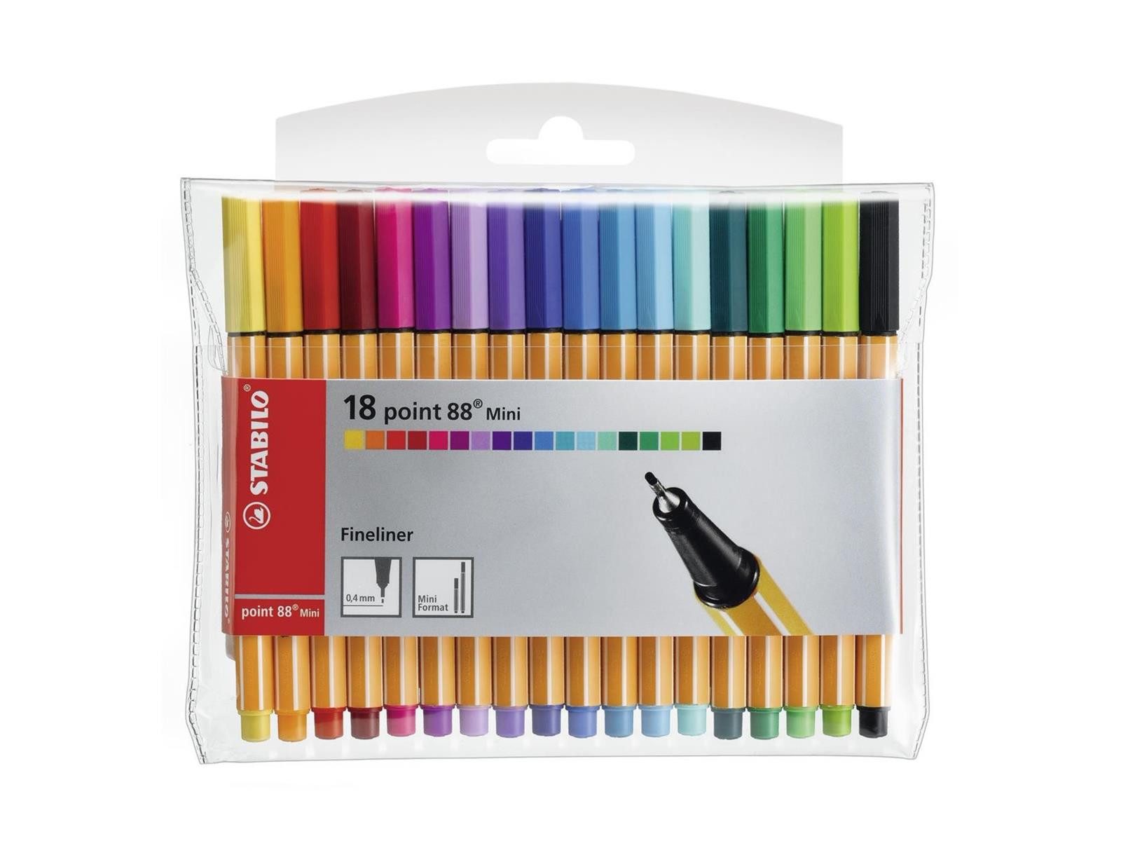 Der STABILO point 88 Fineliner Mini ist Europas führender Fineliner im handlichen Mini-Format und überzeugt durch seine einzigartige sechskantige Optik mit ansprechendem Streifendesign. Mit einer metallgefassten Spitze von 0,4 mm ist er ideal geeignet für präzises Zeichnen und Schreiben. Das praktische Kunststoffetui enthält 18 brillante Farben und macht ihn zum perfekten Begleiter für unterwegs, in der Schule oder im Büro.
