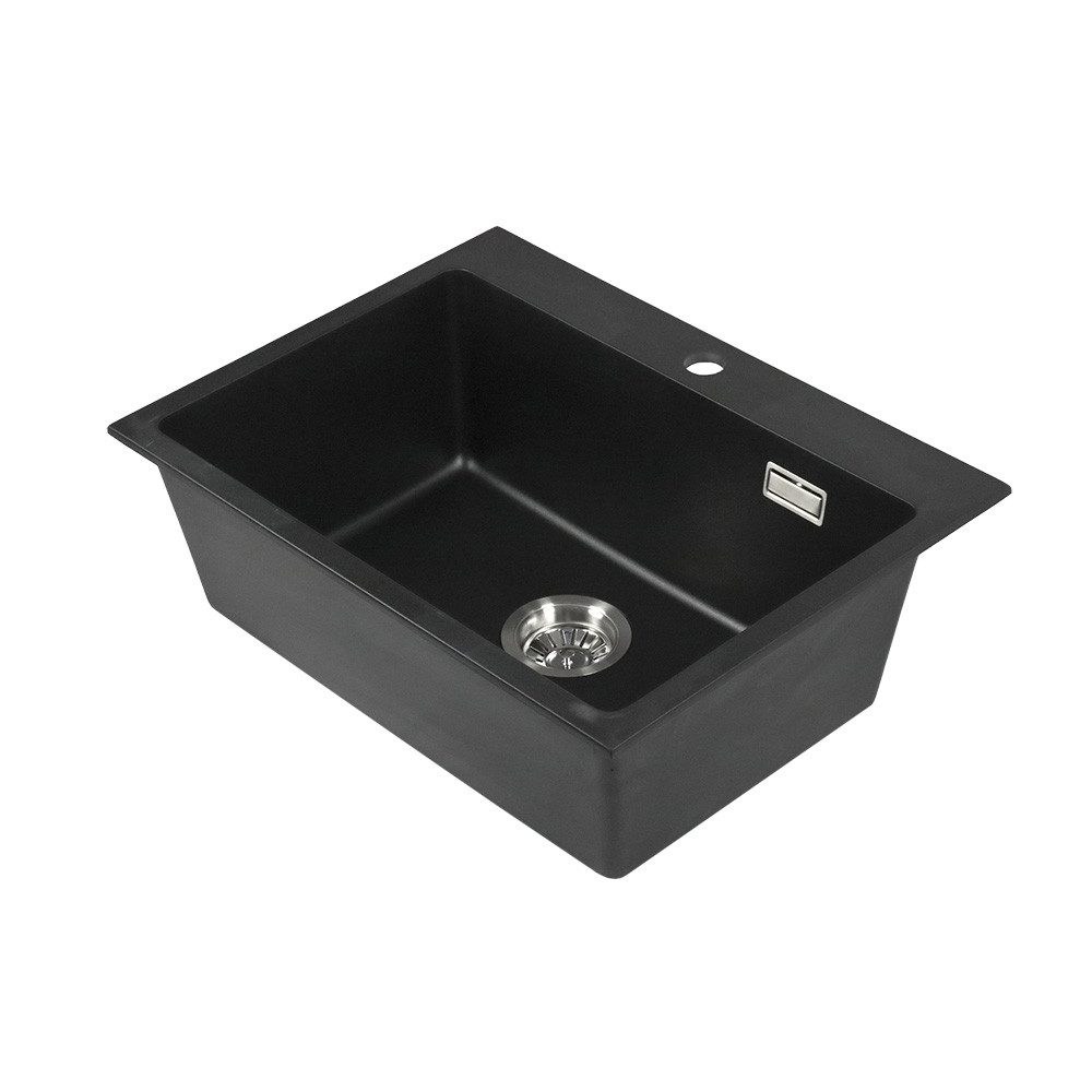 Die Einbauspüle "Kingston" überzeugt mit schlichtem und elegantem Design. Gefertigt aus Mineralguss in Granitoptik, ist die Spüle resistent gegenüber Korrosionen und Hitze.