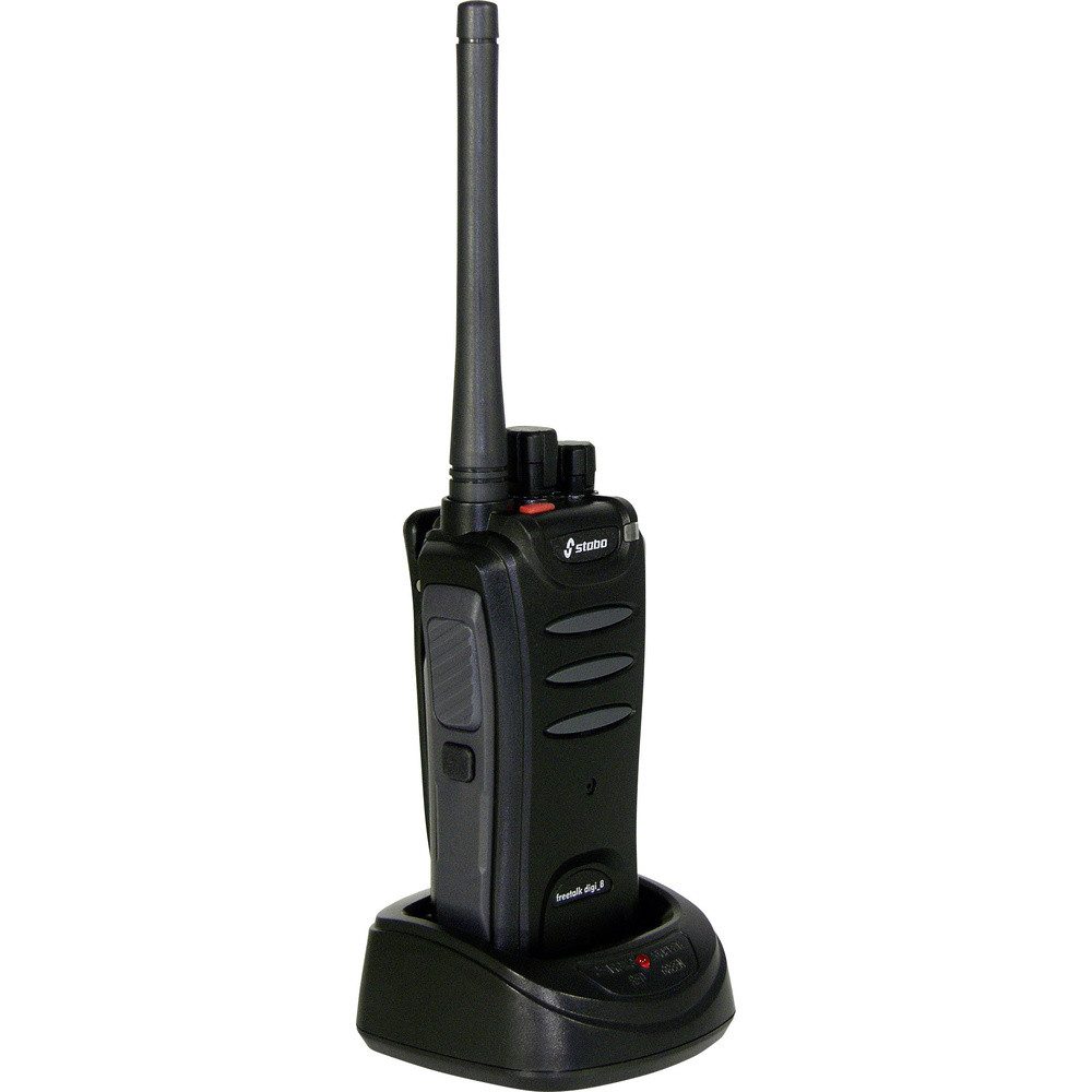 Ob Baugewerbe, Landschaftsbau, Sicherheitsdienst oder Veranstaltungsservice: das vielseitig einsetzbare PMR 446-Funhandy stabo freetalk digi_8 bietet die Möglichkeit der Kommunikatin auf 8 digitalen sowie 8 analogen Funkkanälen. Anmelde- und gebührenfrei können damit Informationen schnell ausgetauscht und Arbeitsabläufe effizient koordiniert werden. Auf den analogen Kanälen stehen 50 CTCSS-Töne und 105 DCS-Codes zur Verfügung, um gezielt Mitarbeiter oder aber festgelegte Arbeitsgruppen anzuspechen. Die 8 zusätzlichen digitalen Kanäle können dank Verschlüsselungsfunktion abhörsicher geschaltet werden. Einzel- und Gruppen-Ruf erlauben auch hier eine gezielte Ansprache. Das stabo freecomm digi_8 ist IP54-Standard staub- und spritzwassergeschützt und somit bestens für anspruchsvolle Einsätze geeignet. Für lange Batteriestandzeiten sorgen der leistungsstarke 1.650 mAh Lithium-Ionen-Akku sowie die automatische Batteriesparschaltung. Впередe Highlights sind die Notruf-Alarm-Taste, eine 9-stufige Rauschsperre, der Flüster-Modus, die TOT-Funktion (Sendezeitbegrenzung) sowie eine frei programmierbare Taste. Individuelle Anpassungen können über ein optional erhältliches Programmierset vorgenommen werden