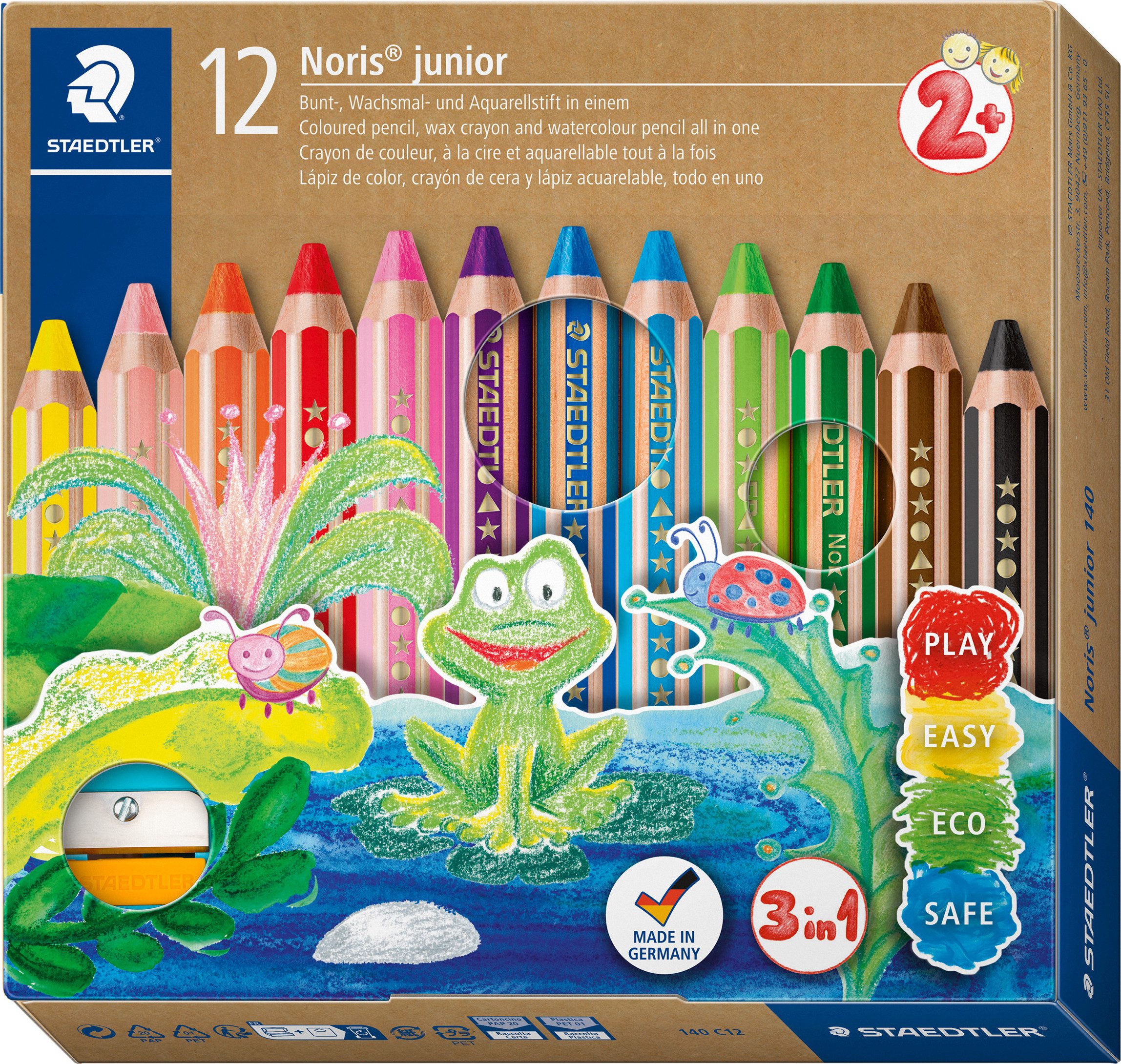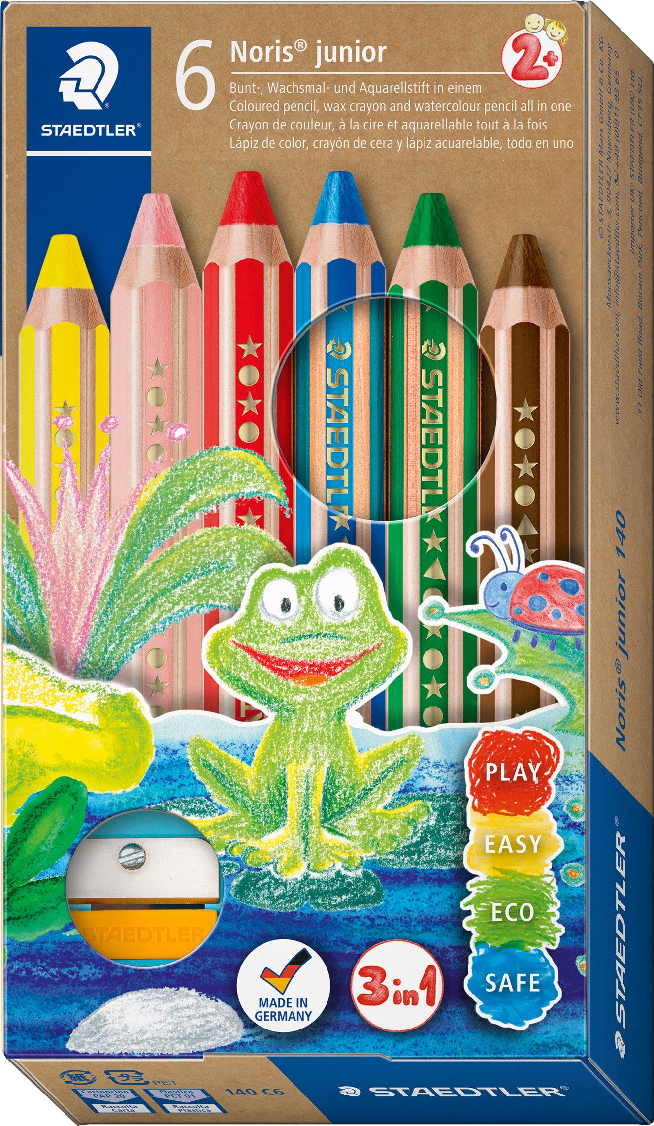Bist du bereit für unbeschwerte Kreativität? Dann lass dich von unserem Noris junior Buntstift begeistern! Durch sein kompaktes Format und den weichen Abstrich in leuchtenden Farben ist er perfekt für kleine Kinderhände geeignet. Doch das ist nicht alles: Der Stift vereint gleich drei Funktionen in einem – er ist Bunt-, Wachs- und Aquarellstift in einem! Mit ihm kannst du nicht nur auf Papier und Pappe zeichnen, sondern auch auf Glas und sogar dunklen Oberflächen. Und dank der extra dicken Mine ist er auch besonders bruchsicher. Das Holz für die Stifte stammt aus PEFC-zertifizierten, nachhaltig bewirtschafteten Wäldern. Probiere es aus und tauche in die bunte Welt der Kreativität ein!