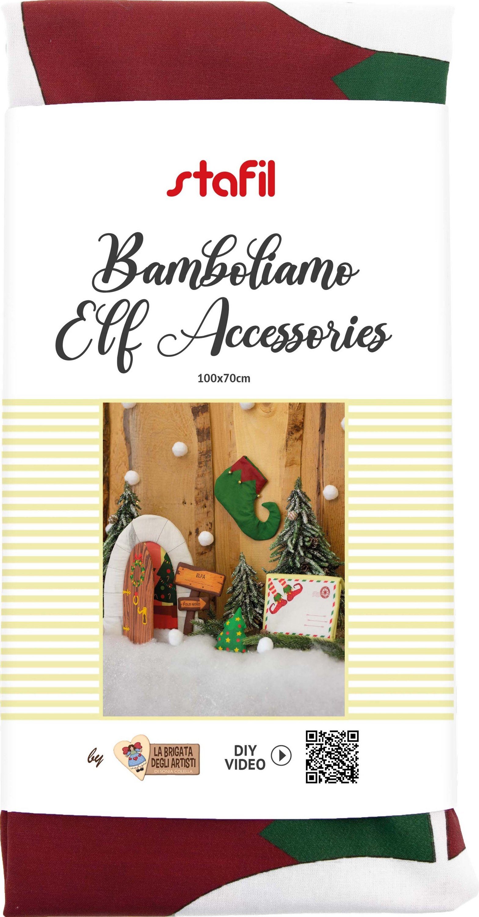 Nähset 'Elfenszene' ist ein wunderschönes Stoffmuster mit einer Размер von ca. 100 x 70 cm, das in Zusammenarbeit mit Brigata degli Artisti entstanden ist. Zum Nähen von weihnachtlichen Accessoires für eine Dekoration mit Weihnachtselfen und Puppen. Zusätzlich werden Füllmaterial, Vlies und drei kleinen Schellen benötigt. Eine Wichteltür mit Einblick in eine detailreiche Weihnachtsszene, ein Paar Wichtelschuhe, Schilder, ein dekorierter Tannenbaum und ein Weihnachtsbrief können aus dem Stoffmuster genäht werden. Ideal für die kreative Weihnachtsdekoration.