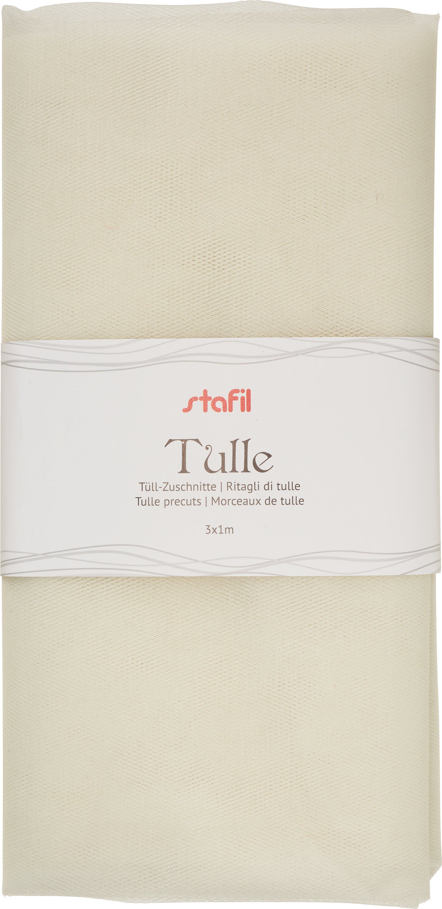Tüll-Zuschnitt, Breite ca. 1 m, Длина ca. 3 m mit einem Stoffgewicht von ca. 12 g/m². Das Material ist aus 100 % Polyester. Ein Tupfer Tüll für zauberhafte Effekte und Extras! Das leichte Netzgewebe eignet sich hervorragend für Näh- und Bastelarbeiten. Super in Kombination mit Pompon Borte, Satinbändern, Perlen, Paillettenbändern und vielem mehr. Für traumhafte Kleidungsstücke, Bastelarbeiten oder Dekorationen.
