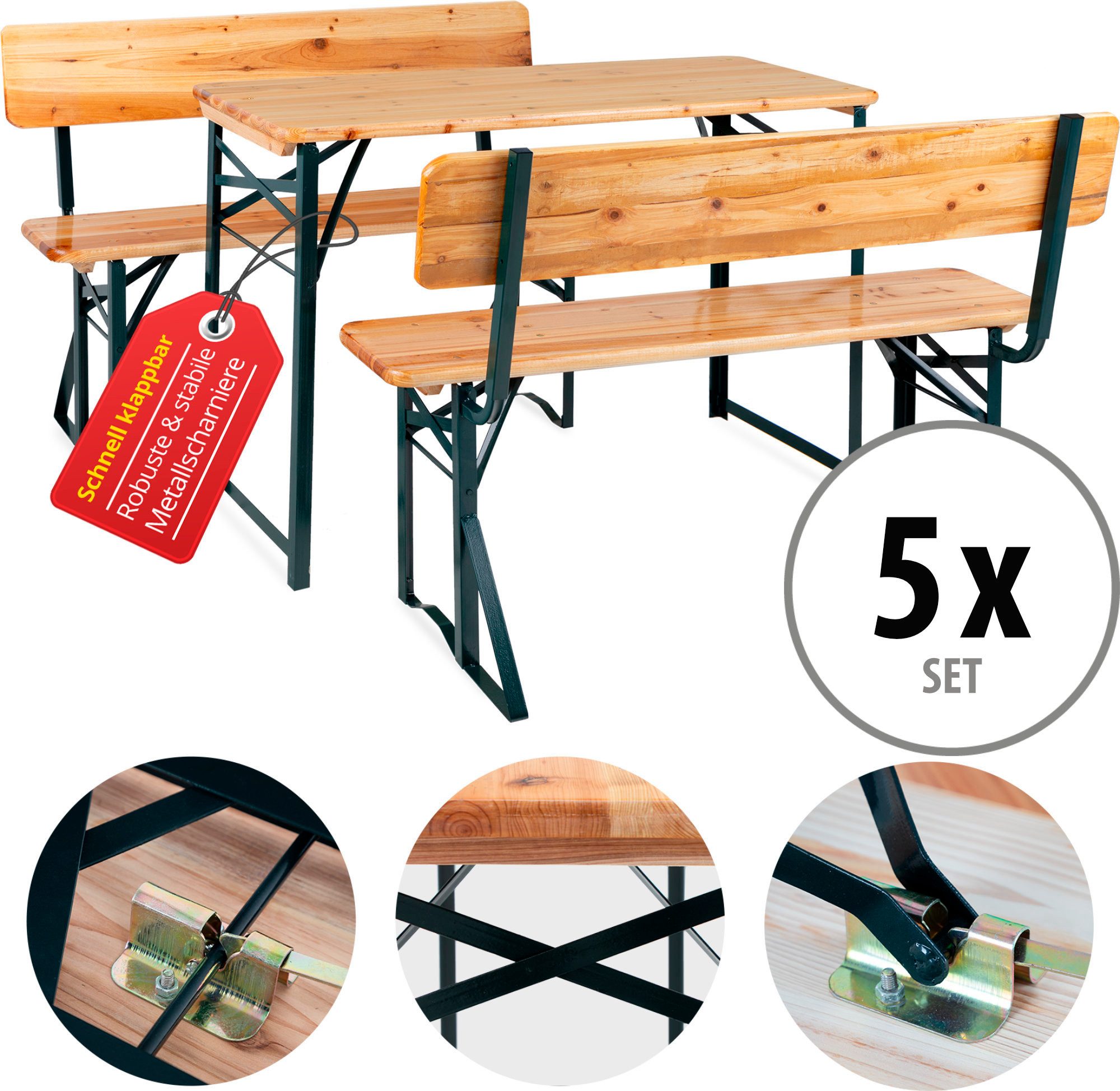Wer träumt nicht davon, im Sommer gemütlich im Biergarten bei einem gekühlten Getränk zu sitzen und sich einfach so rundum wohlzufühlen? Die Stagecaptain Hirschgarten Bierzeltgarnitur mit Lehne macht echtes Biergartenfeeling jetzt auch für die heimische Terrasse oder den Balkon möglich! Die stabilen Holzbänke sorgen für noch bequemeren Sitzkomfort in Innen- und Außenbereich und lassen sich dabei kinderleicht aufstellen.
