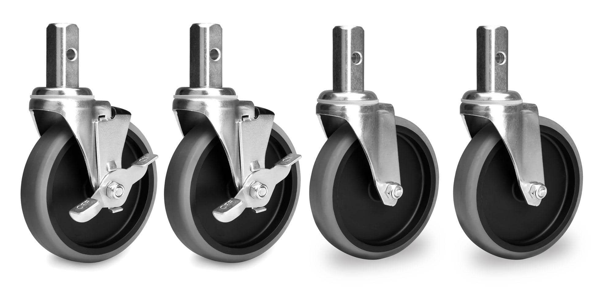 Die Rollen eignen sich hervorragend zum Einbau in Vierkantrohre mit 22 mm Innendurchmesser. Die lenkbaren Rollen mit einem Durchmesser von 125 mm lassen sich sehr leicht manövrieren und meistern auch Türschwellen problemlos. Die 26 mm breite Lauffläche aus Hartgummi bietet beste Rolleigenschaften bei minimaler Lautstärke.