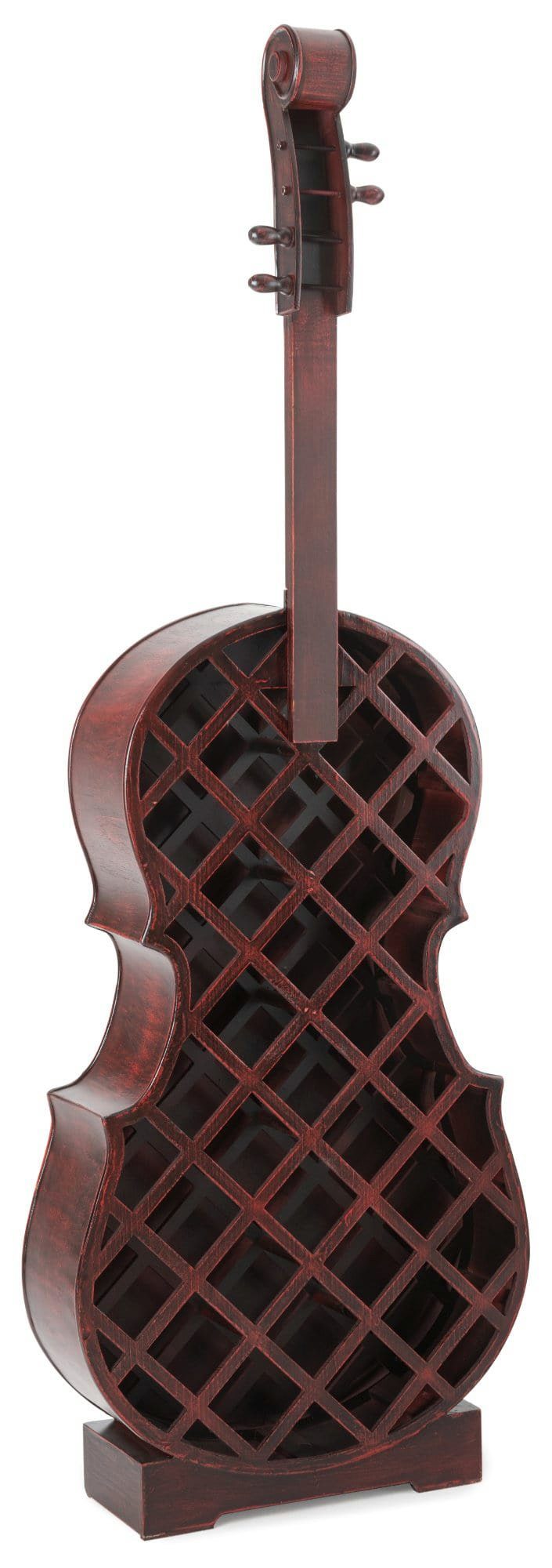 Das handgemachte Weinregal aus stabilem MDF und Holzlaminat im ausgefallenen "Cello"-Design besticht durch seine edle Vintage-Optik und bietet Platz für 25 Flaschen mit einem Durchmesser von bis zu 9 cm. Da es sich bei den Flaschenregalen um ein Naturprodukt handelt, ist jedes Stück ein Unikat.