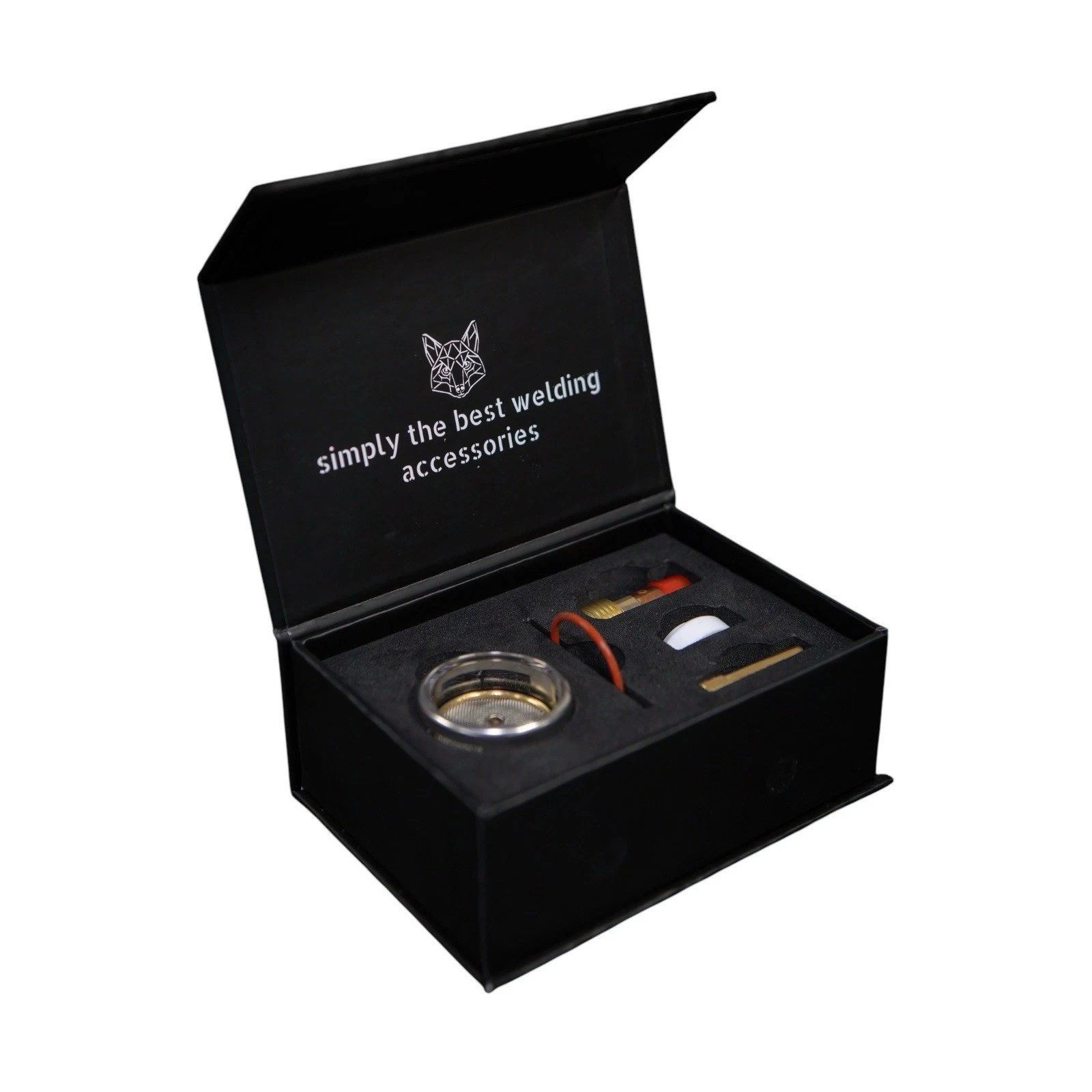 Lieferumfang | 1x STAHLFUX Glas-Gasdüse (BBWSG19) 1x Ersatz-Diffusor 1x O-Ring 1x Spannhülse (Typ 45V44) 1x Adapterkit für SR17-Brenner |