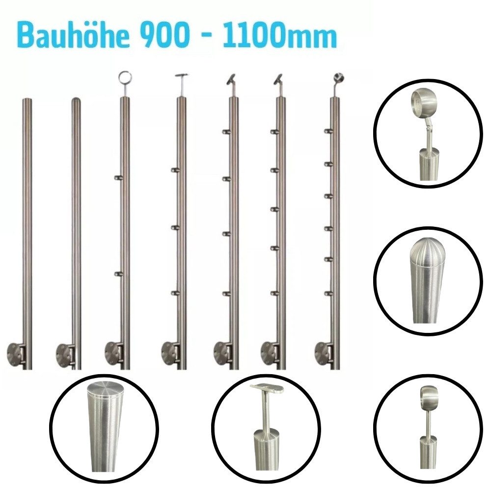 Unsere Edelstahlpfosten mit 3 Querstangenhaltern sind eine stabile und flexible Lösung für Geländersysteme auf Balkonen, Terrassen oder Treppen. Jeder Halter ist mit einer 12-mm-Bohrung versehen, vormontiert und sofort einsatzbereit. Durch die Применитьung aus rostfreiem V2A-Edelstahl und den Einsatz modernster CNC-Fließbohrtechnik garantieren die Pfosten höchste Stabilität, Langlebigkeit und Sicherheit. Die exakten Halter-Abstände sind für jede Pfostenhöhe genau berechnet und sorgen für ein gleichmäßiges, harmonisches Geländerbild.