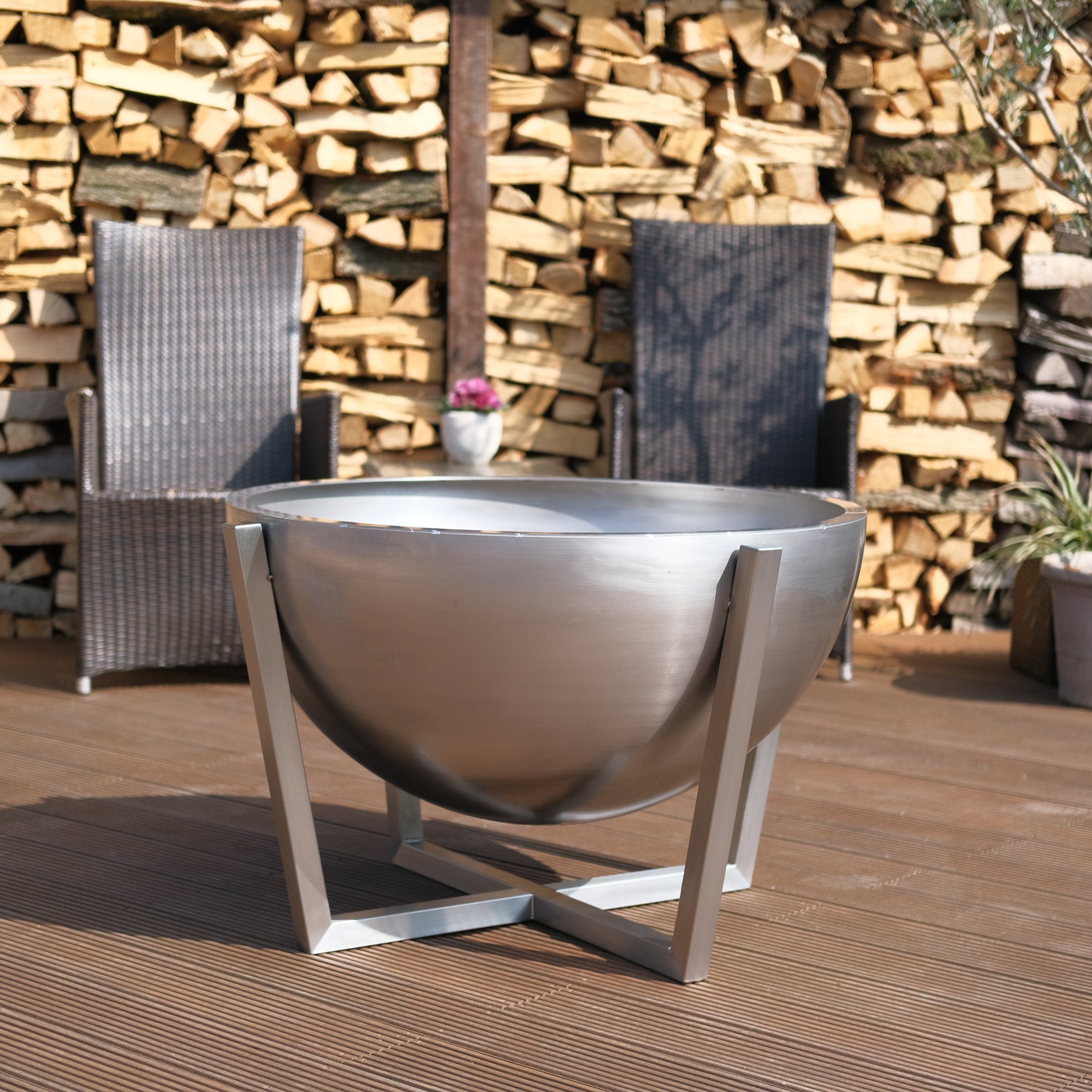 Jahrzehntelange Haltbarkeit mit faszinierender Ästhetik - die Designer Feuerschale besteht aus massivem 4 mm V2A Edelstahl und bleibt rostfrei, hitzebeständig & wetterfest.