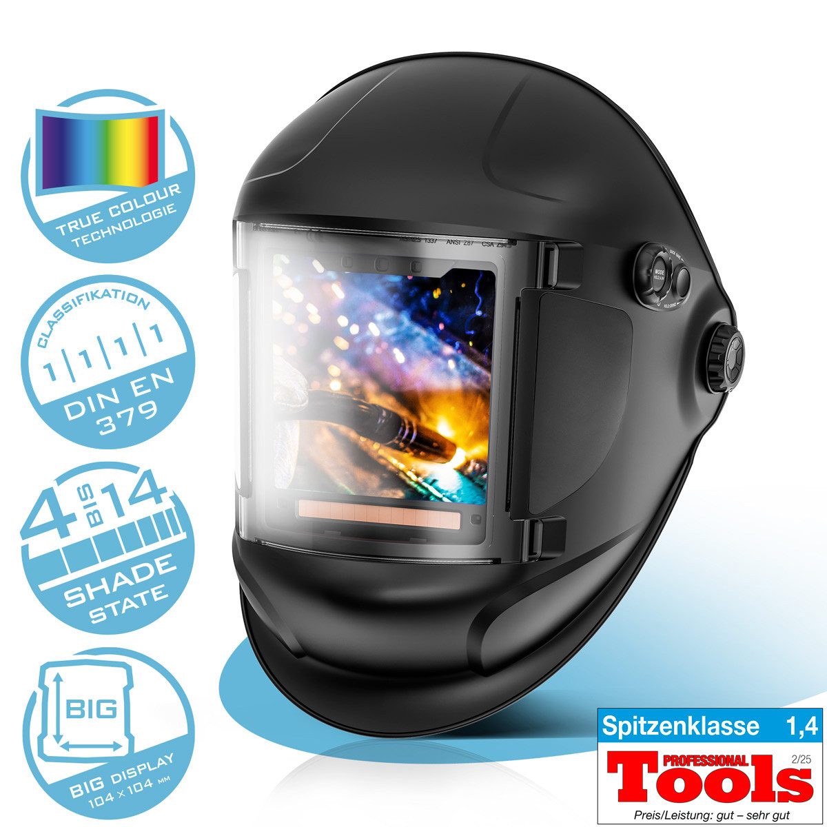 Lieferumfang | 1 x Premium-Kopfband 1 x Aufbewahrungstasche 1 x Ersatz-Schutzscheibe (Innen) 1 x Ersatz-Schutzscheibe (Außen) 1 x STAHLWERK Schweißhelm TITAN 2 x Kunststoffabdeckung für Seitenfenster |