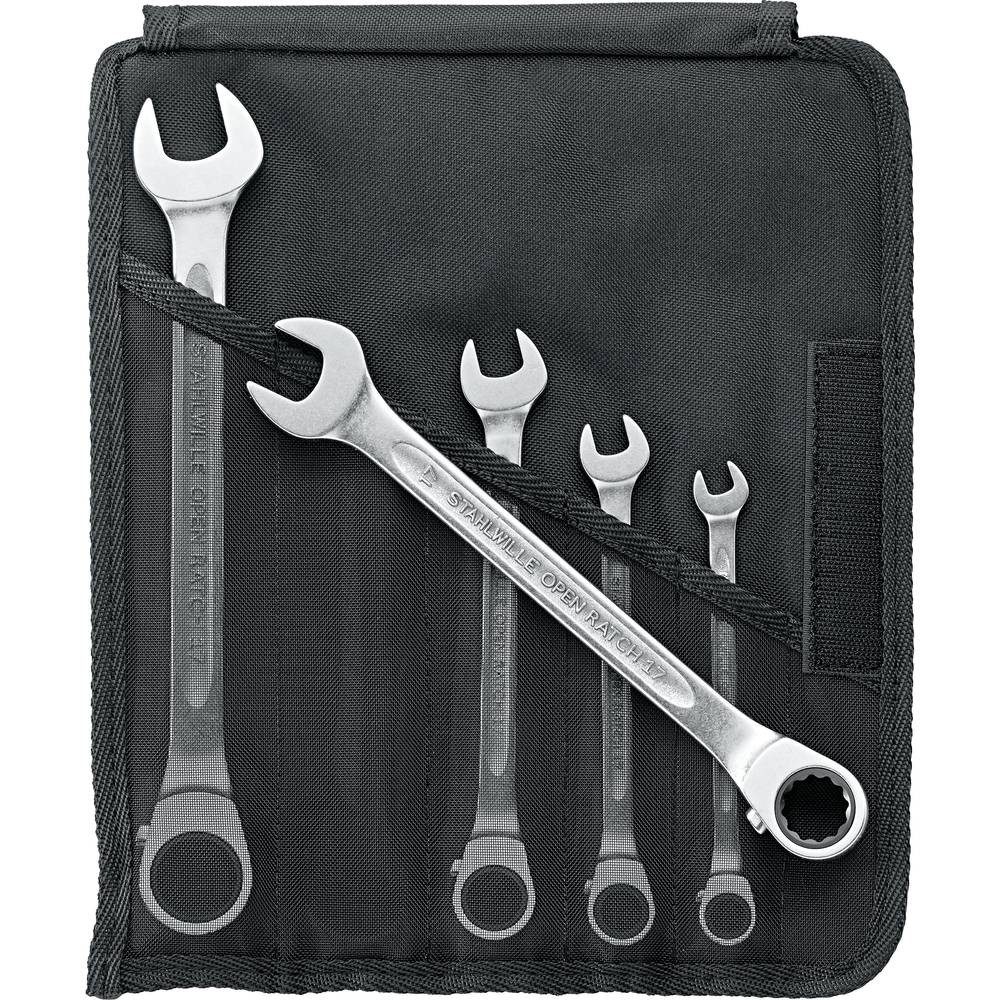 Praxisgerechte Zusammenstellung Der Ratschenringmaulschlüssel-Satz enthält die gängigsten Schlüsselgrößen von 8 bis 19 mm und deckt damit ein breites Spektrum von Einsatzmöglichkeiten ab. Die Maulöffnung ist um 15° geneigt, wodurch sie exakt an den Schrauben anliegt und somit eine optimale Kraftübertragung gewährleistet. Die integrierte Feinzahnratsche mit einem geringen Rückholwinkel ermöglicht ein schnelles und effizientes Anziehen der Schrauben, ohne dass der Schlüssel abgesetzt werden muss. Hochwertige Verarbeitung Die Schraubenschlüssel sind aus hochwertigem Chrome Alloy Steel geschmiedet, was ihnen auch im Dauereinsatz eine hohe Stabilität und Widerstandsfähigkeit verleiht. Sie sind zusätzlich korrosionsbeständig verchromt. Rutschhemmende Oberfläche Die STAHLWILLE Schraubenschlüssel verfügen über eine hochwertige und griffige Oberflächenstruktur, die ein sicheres Arbeiten selbst mit öligen Händen ermöglicht. Die rutschfeste Beschaffenheit erhöht die Kontrolle bei der Handhabung. Organisierte Aufbewahrung Das Set findet seinen Platz in den Einsteckfächern einer praktischen Rolltasche. Dadurch lässt es sich bequem und platzsparend überall mitführen. Durchsichtige Netzeinsätze ermöglichen einen schnellen Überblick über die Vollständigkeit deines Werkzeugs..