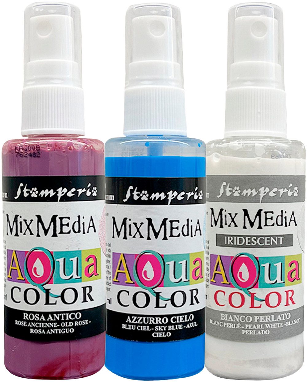 Die flüssige Bastelfarbe 'Stamperia Aquacolor Lavender' ist ein wahres Multitalent. Mit der praktischen Sprayflasche kannst du die Farbe ganz einfach auf verschiedene Materialien auftragen, wie z.B. Acrylglas, Holz, Papier oder Textilien. Das Set besteht aus den Farben Rosa Antico, Azzuro Cield und Bianco perlato und bietet dir unzählige Gestaltungsmöglichkeiten. Die Farben sind geruchsneutral und auf Wasserbasis, was sie besonders angenehm in der Anwendung macht. Kombiniere die verschiedenen Artikel der Kollektion 'Lavender' für ein harmonisches Gesamtbild und kreiere zauberhafte Dekorationen in violetten Farbtönen.