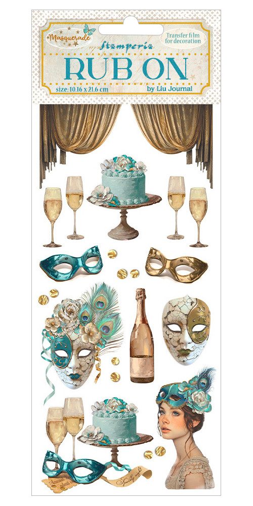 Mit der Rub On Transferfolie 'Masquerade' kannst du deine Kreativität auf glatten Oberflächen entfalten. Die Folie präsentiert stilvolle Muster in Beige- und Blautönen aus der exklusiven Masquerade-Kollektion. Mit einem Rubbelwerkzeug überträgst du die Motive mühelos auf deinen Lieblingsgegenstand. Ob Scrapbookarbeiten, Grußkarten, Geschenkverpackungen oder zum Verzieren von Schachteln und Papiertüten – die Anwendungsmöglichkeiten sind vielfältig. Lass deine kreative Ader für zahlreiche Kreativarbeiten entdecken, und erwecke deine Projekte zum Leben.