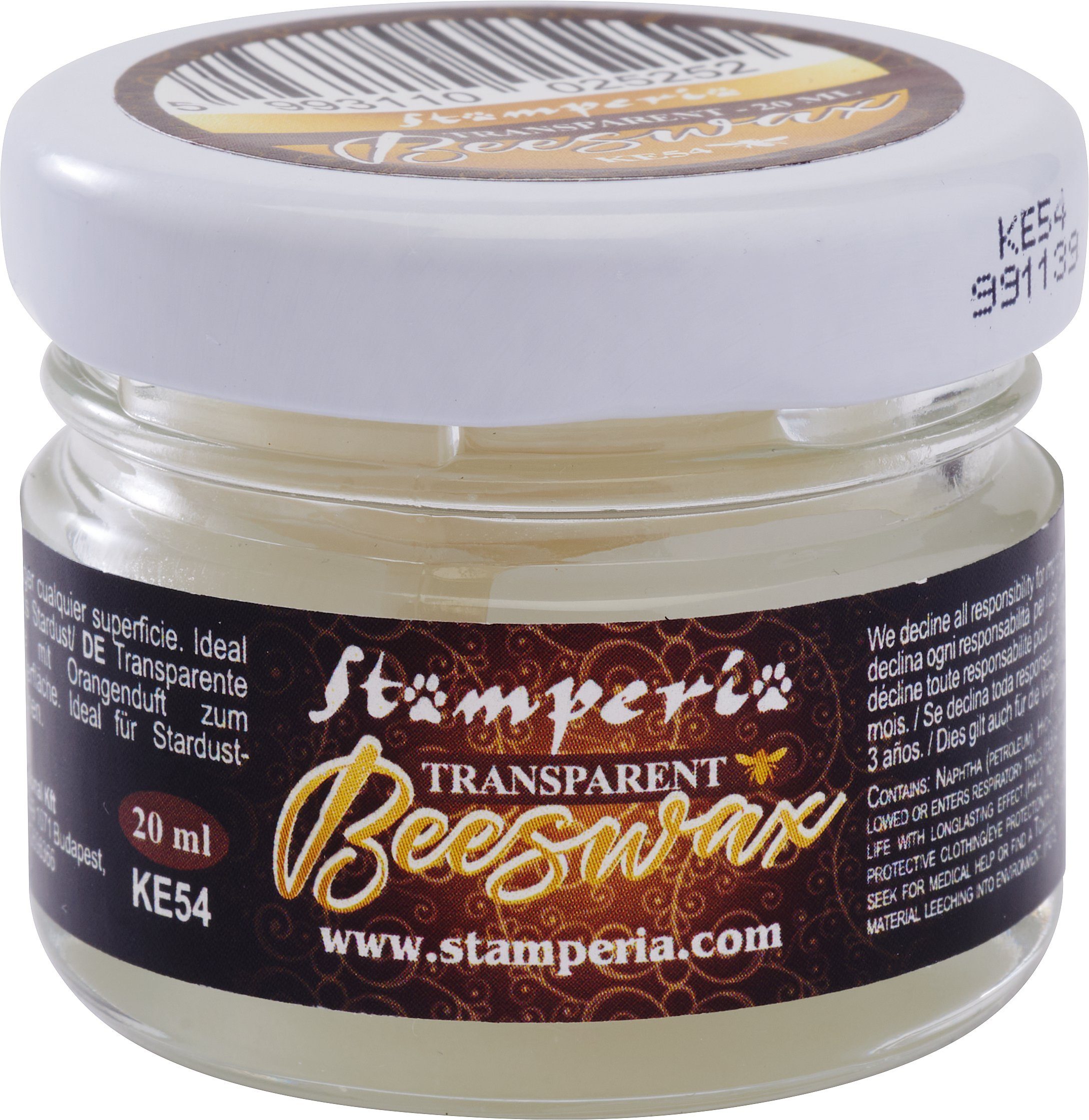Mit Stamperia Beeswax kannst du deine Möbel, Kreativ-Gießmassen, Terrakotta / Ton und Holz schützen und viel besser noch - veredeln. Dank der einfachen Anwendung und der schnellen Verarbeitungszeit kannst du deine Projekte in kürzester Zeit vervollständigen. Mit dem angenehmen Orangenduft und dem 20 ml Inhalt kannst du deine Projekte mit einem matten oder glänzenden Finish versehen. Einfach mit dem Finger eine kleine Menge der Paste aufnehmen und in z. B. Stardust Metallic Pigment tauchen. Danach einfach die Oberfläche deiner Dekoration mit wischenden Bewegungen zum Glänzen bringen. Probiere es jetzt aus und erlebe die Vielfalt von Stamperia Beeswax!