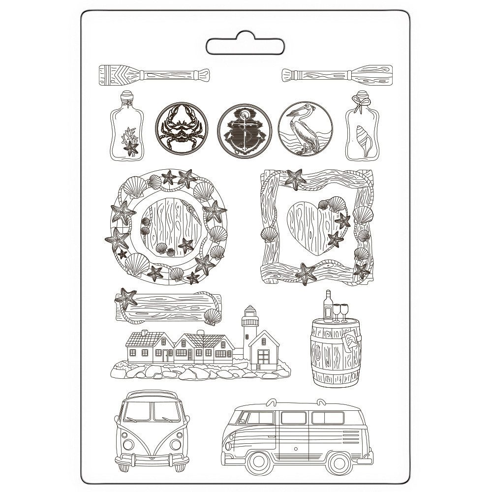 Erlebe mit der Soft Modellierform A4 'Silent Sea' die Magie des Sommers. Diese Gießform aus Kunststoff ist ideal für deine kreativen Projekte mit Modelliermasse und Kreativgießmasse. Mit 16 wunderschönen Motiven, darunter Paddel, Flaschen, Muscheln und charmante Bulli's, erhälst du viele tolle Inspirationen. Die Kollektion 'Silent Sea' von Stamperia inspiriert dich, maritimen Flair in deine Kunstwerke zu bringen. Das praktische DIN Format A4 ermöglicht es dir, deine Ideen einfach umzusetzen. Lass dich von der Vielfalt der Motive begeistern und kreiere individuelle Meisterwerke, die den Sommer in dein Zuhause bringen.
