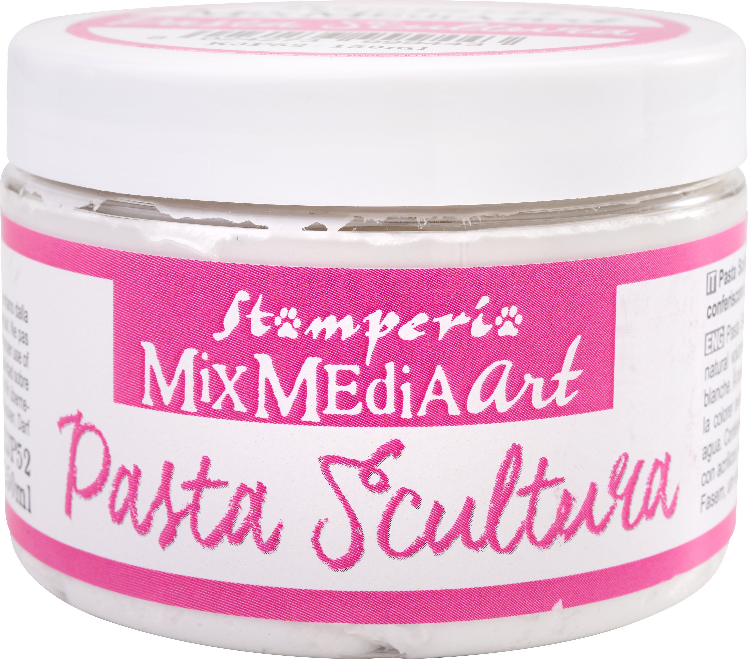 Stamperia 'Pasta Scultura', Inhalt 150 ml auf Wasserbasis mit Naturfaser. Die Paste ist perfekt geeignet um ein sehr natürliches Volumen zu schaffen. Aufgetragen wird die Paste mit kleinen Spateln. Kann nach der Trocknung mit Aquacolor oder Acrylfarbe eingefärbt werden. Eine Strukturpaste für Mixed Media Projekte. Geeignet auf Glas, Holz, Karton, Keilrahmen und vielem mehr. Für einzigartige Dekorationen.
