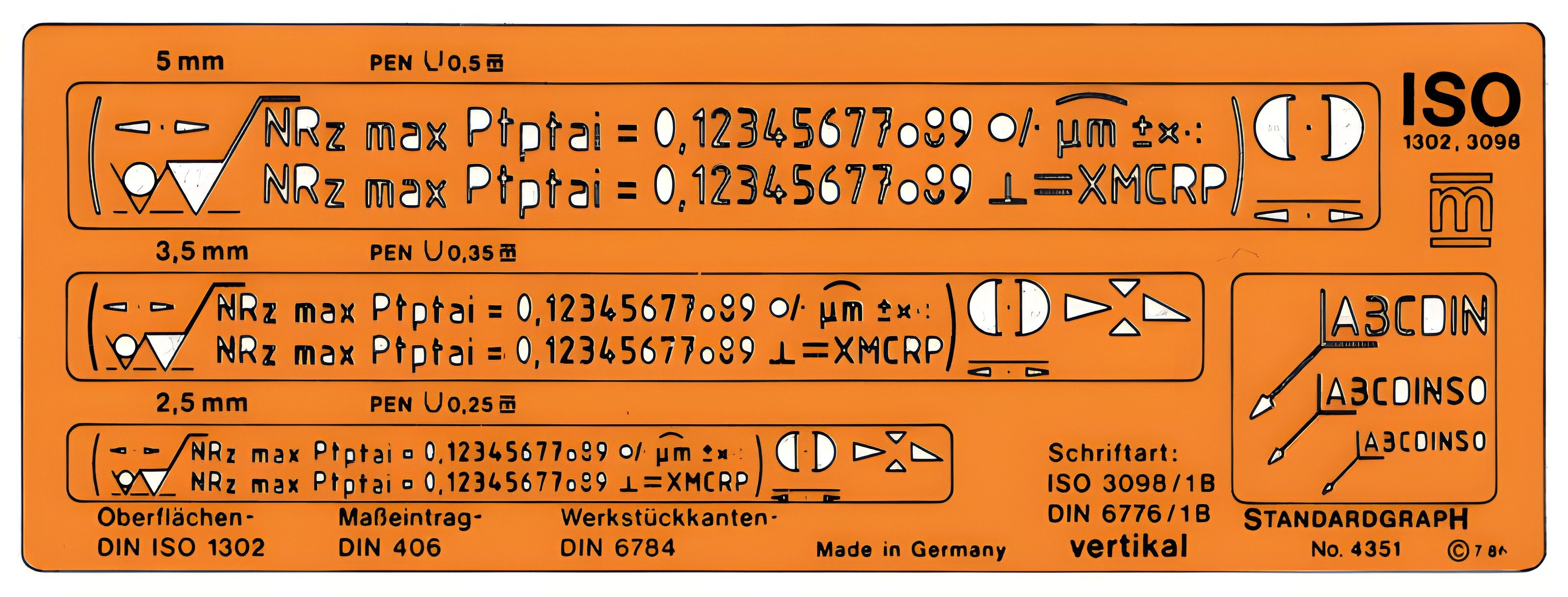 STANDARDGRAPH Zeichenlineal Standardgraph Oberflächenzeichen ISO gerade 1 Stück