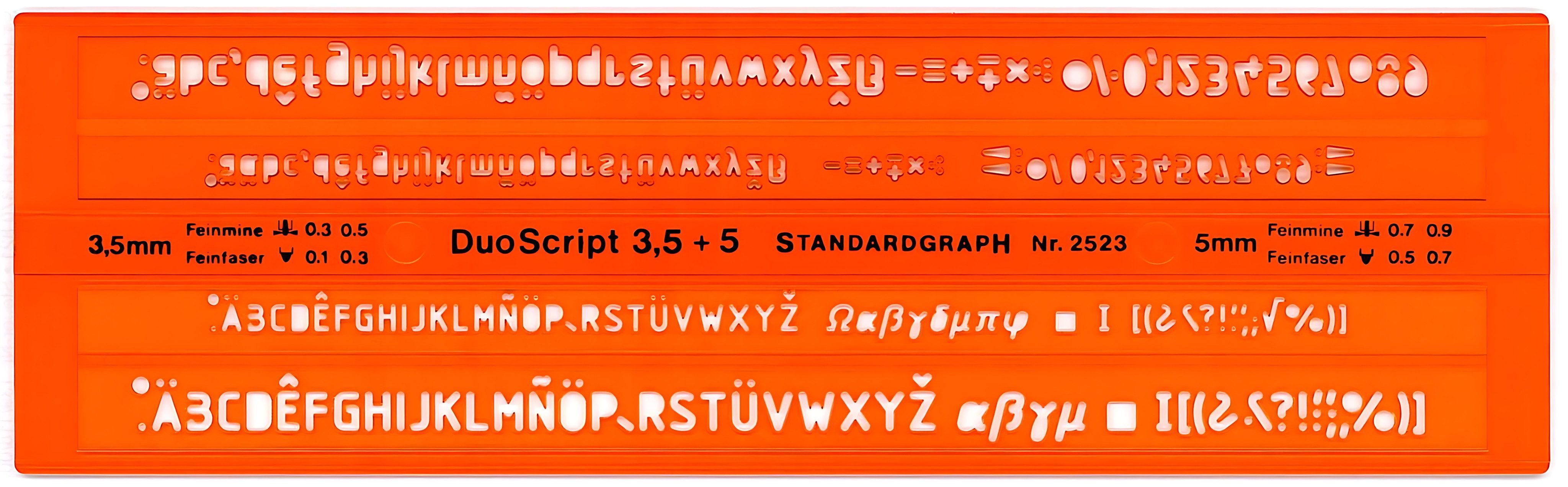 Standardgraph Schriftschablone DuoScript-Fineliner 1 Stück Schriftschablone 3,5 + 5mm für Feinmine 0,3;0,5 Feinfaser 0,1;0,3