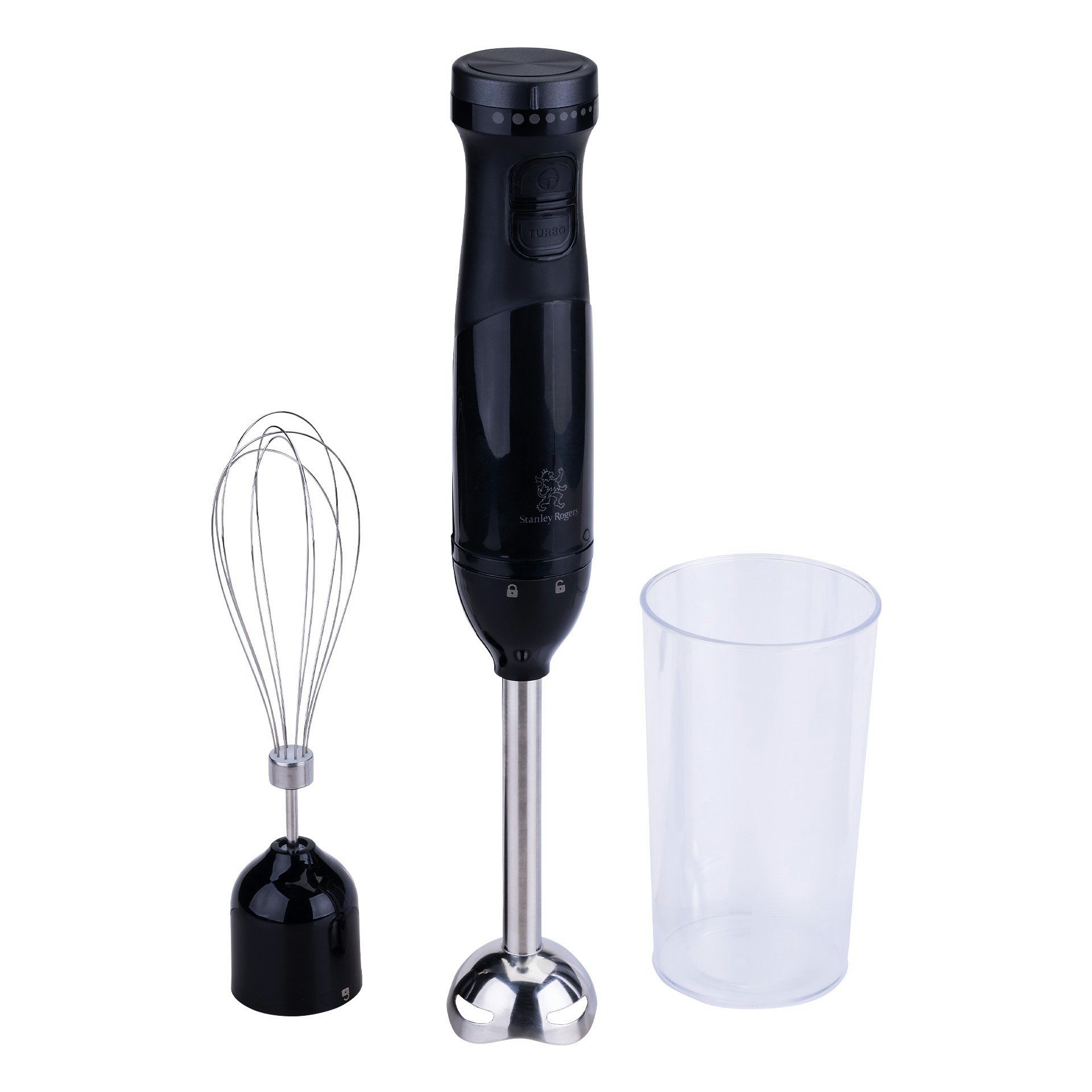 Entdecke den Stanley Rogers Stabmixer, Deinen neuen Allrounder in der Küche. Mit einem leistungsstarken 600W Motor ausgestattet, ermöglicht dieses Gerät das schnelle und effiziente Verarbeiten von Zutaten. Ob Du cremige Suppen zubereiten, frische Smoothies mixen oder perfekte Sahne schlagen möchtest, die vielseitigen Aufsätze – ein Pürier-Aufsatz mit scharfen Edelstahl-Doppelklingen und ein Schneebesen – lassen keine Wünsche offen.Die stufenlose Geschwindigkeitsregelung mit 9 verschiedenen Stufen gibt Dir die volle Kontrolle über jede Zubereitungsart, von grob bis fein. Die praktische Ein-Hand-Bedienung des Mixers erleichtert die Bedienung und macht das Kochen zum Vergnügen ohne großen Aufwand.Zudem ist der Stabmixer mit einem 700ml Mixbehälter ausgestattet, der das Abmessen und Mischen Deiner Zutaten vereinfacht. Dieser Behälter ist ideal für die Zubereitung von Smoothies, Suppen und vielem mehr. Durch sein modernes Design und die einfache Handhabung ist der Stabmixer nicht nur funktional, sondern auch ein optisches Highlight in Deiner Küche.Die einfache Reinigung macht den Stabmixer zu einem unverzichtbaren Küchengerät für jeden Haushalt. Hol Dir jetzt die professionelle Unterstützung, die Du brauchst, um Deine Kochkünste auf die nächste Stufe zu heben!