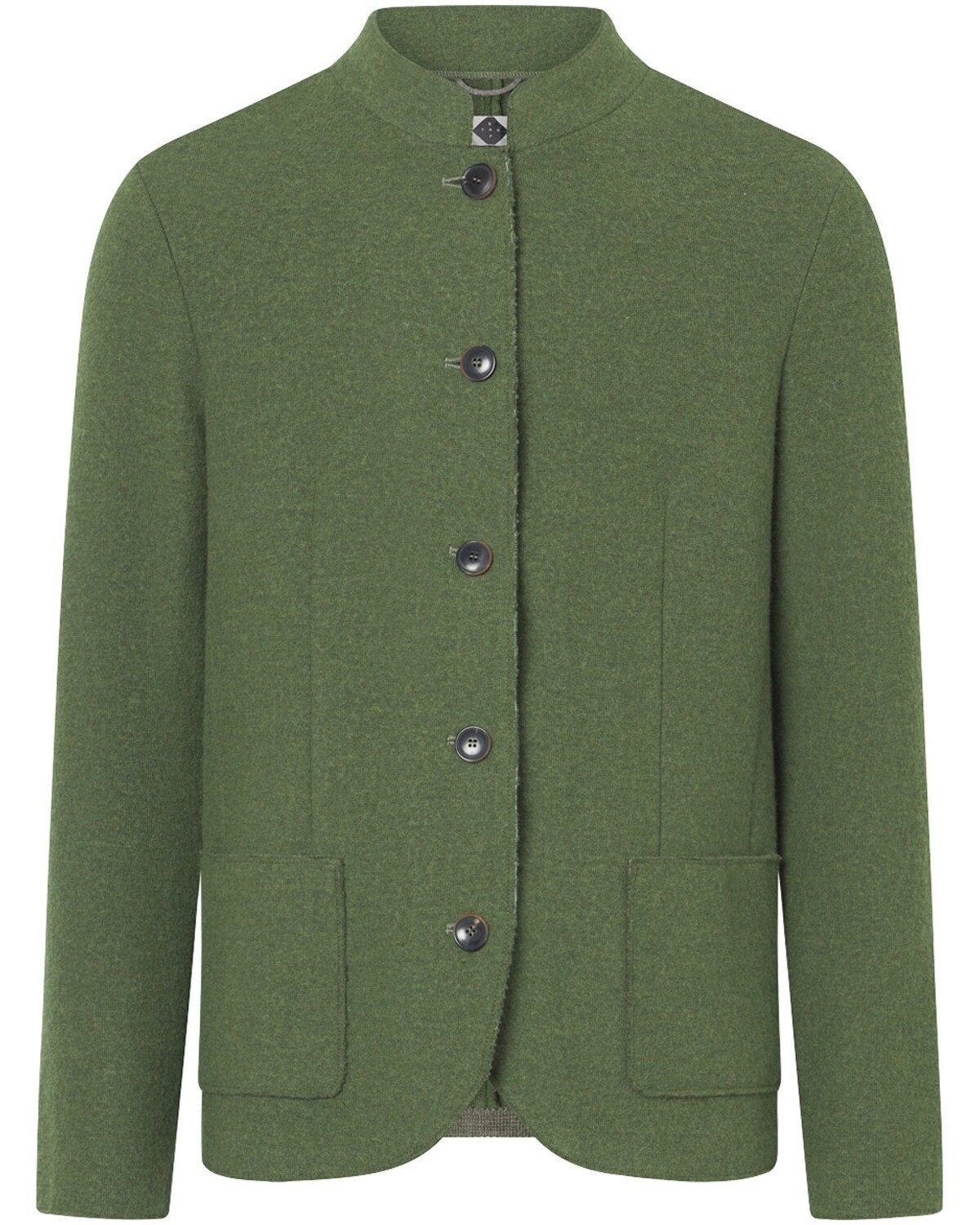 Die Herrenjacke Maxi vereint lässigen Stil mit traditionellem Handwerk und bietet ein unvergleichliches Tragegefühl. Hergestellt aus hochwertigem Merino-Baumwoll-Walk, sorgt das Material für eine angenehme Wärme und Atmungsaktivität, ideal für entspannte Freizeitaktivitäten. Die teilweise offenkantige Verarbeitung verleiht der Jacke einen modernen Touch, während die abgerundeten Abschlüsse für eine harmonische Silhouette sorgen. Der Stehkragen und der leicht taillierte Schnitt unterstreichen die maskuline Note und bieten gleichzeitig genügend Bewegungsfreiheit. Rinderhornknöpfe setzen nicht nur einen eleganten Akzent, sondern tragen auch zur Langlebigkeit und Robustheit der Jacke bei. Diese Details machen die Jacke zu einem zeitlosen Kleidungsstück, das sowohl im Alltag als auch bei besonderen Anlässen überzeugt. In Österreich gefertigt, steht die Jacke nicht nur für erstklassige Qualität, sondern auch für hochwertige Produktionsstandards. Die Kombination aus traditionellem Handwerk und modernen Designelementen macht die Herrenjacke Maxi zu einem unverzichtbaren Teil jeder Garderobe. Ideal für stilbewusste Männer, die Wert auf Komfort und Qualität legen. Oberstoff: 50% Schurwolle, 50% Baumwolle. Dieser Artikel enthält nichttextile Teile tierischen Ursprungs.