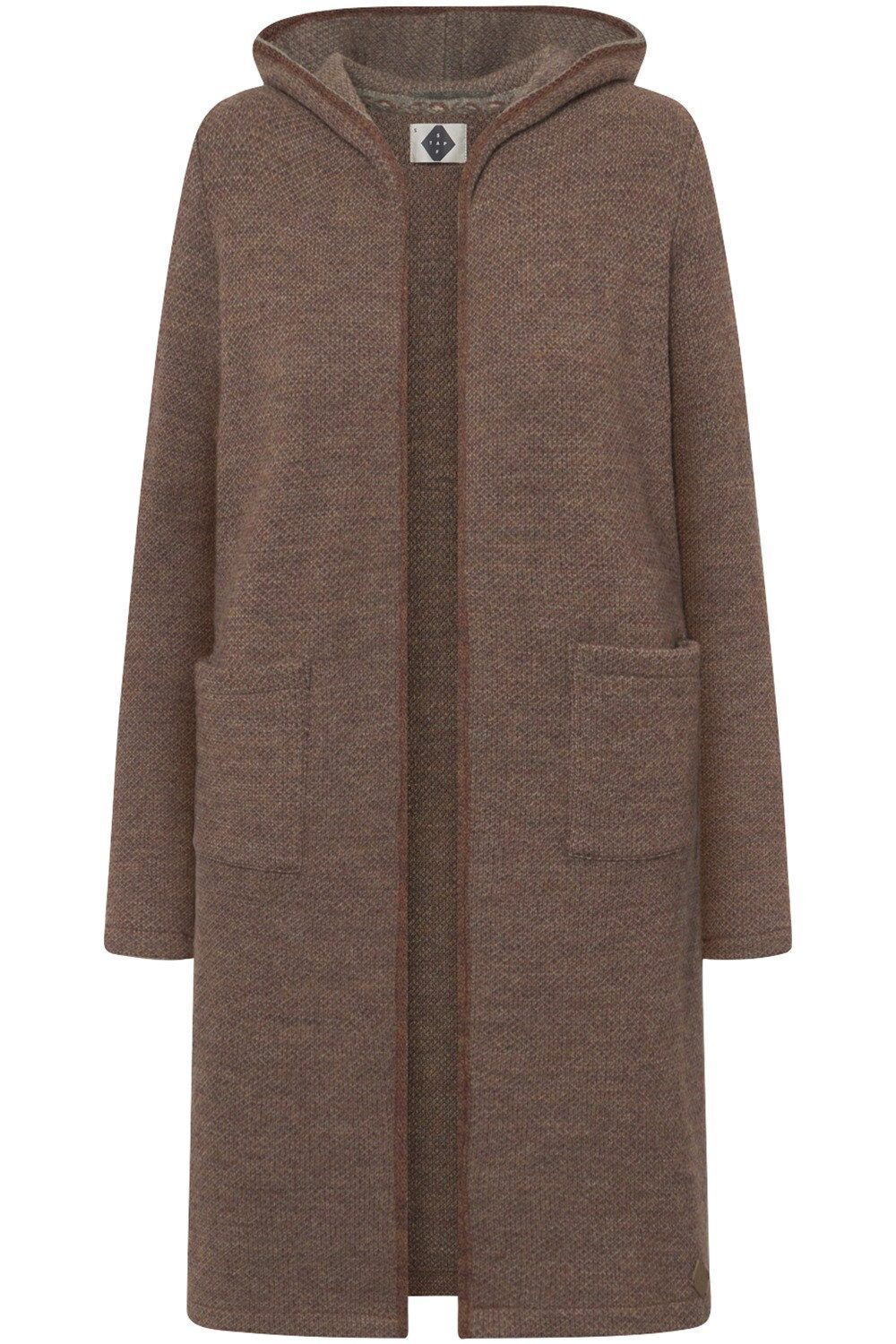 Der Damenmantel Amanda vereint lässigen Stil und funktionale Eleganz. Mit seiner praktischen Kapuze und den aufgesetzten Taschen bietet er nicht nur einen modischen Look, sondern auch ausreichend Stauraum für persönliche Gegenstände. Der offene Schnitt ermöglicht eine flexible Trageweise, die sich ideal für verschiedene Anlässe eignet. Hergestellt aus reiner Schurwolle, überzeugt der Mantel durch seine Robustheit und Formstabilität. Die hochwertige Wolle sorgt für ein angenehmes Tragegefühl und hält auch an kühleren Tagen warm. Die sorgfältige Verarbeitung und die Liebe zum Detail, die in der Produktion in Wörgl, Tirol, steckt, garantieren ein langlebiges Kleidungsstück, das sowohl im Alltag als auch in der Freizeit getragen werden kann. Mit dem Amanda Damenmantel wird ein zeitloses Design präsentiert, das sich mühelos in jede Garderobe integrieren lässt. Die Kombination aus Funktionalität und Stil macht ihn zum idealen Begleiter für modebewusste Frauen, die Wert auf Qualität und Komfort legen. Ein Must-Have für die kühle Jahreszeit, das sowohl schick als auch praktisch ist. Oberstoff: 100% Schurwolle