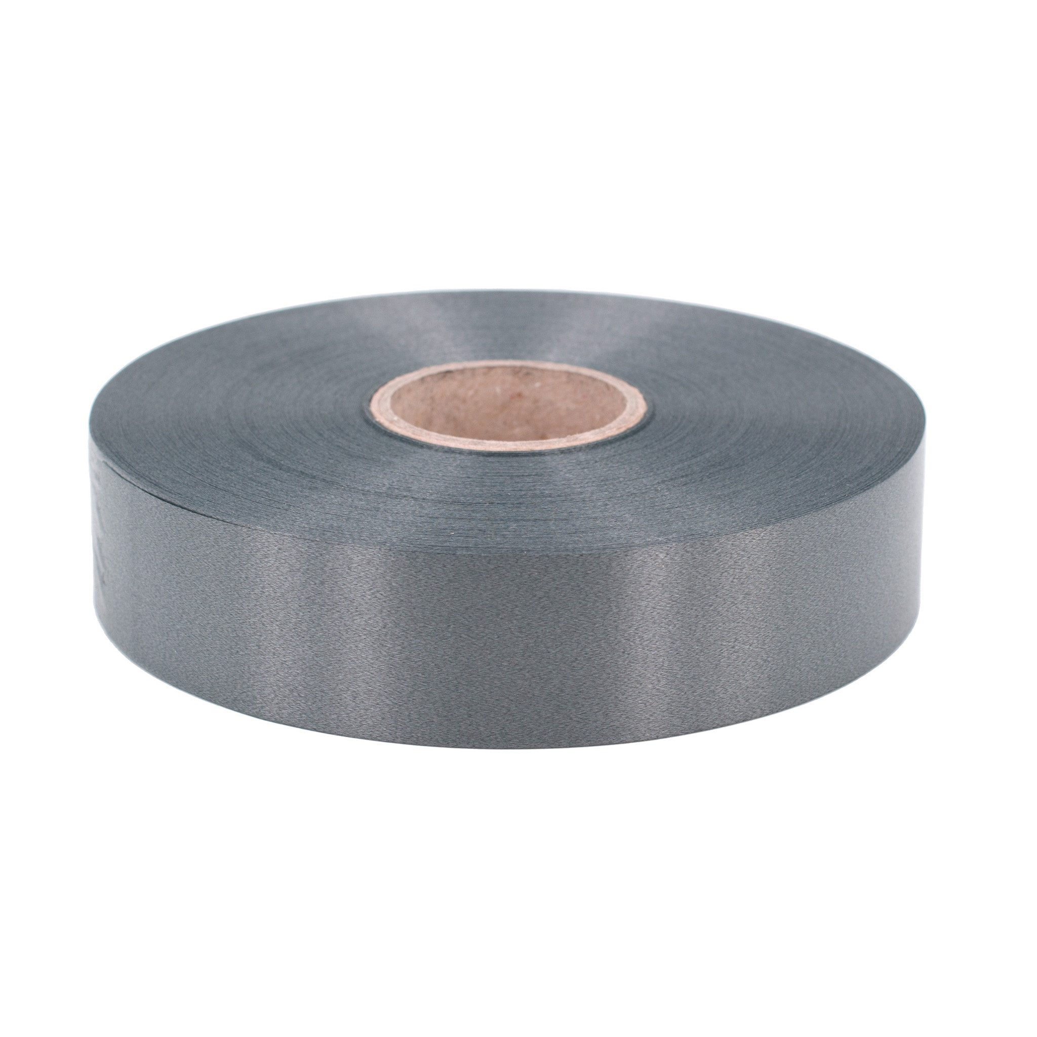 PRODUKT: Schleifenband - Polyband für Geschenkverpackung / BREITE: 31 mm / LÄNGE: 100m auf Rolle / MATERIAL: Kunststoff - Plastik (100% Polypropylen) / FARBE: grau