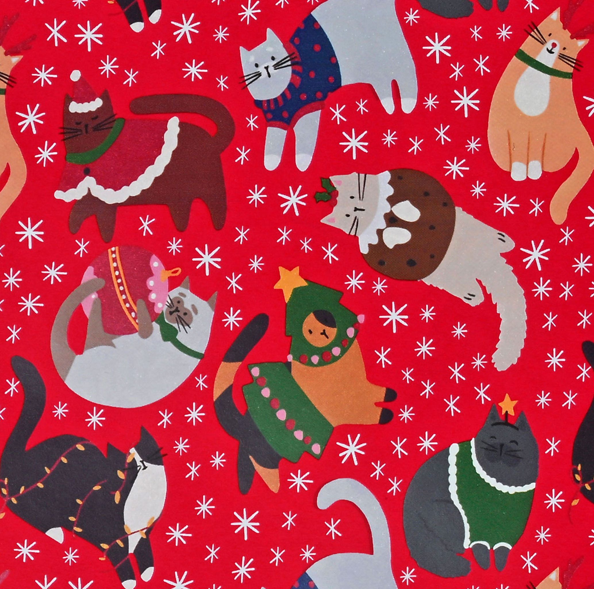 WEIHNACHTSLICHES MOTIV: Mit fröhlichem Katzenmotiv verziert, bringt das Verpackungspapier eine festliche und verspielte Note in Ihre Geschenkverpackungen. Ideal für Kinder, Freunde