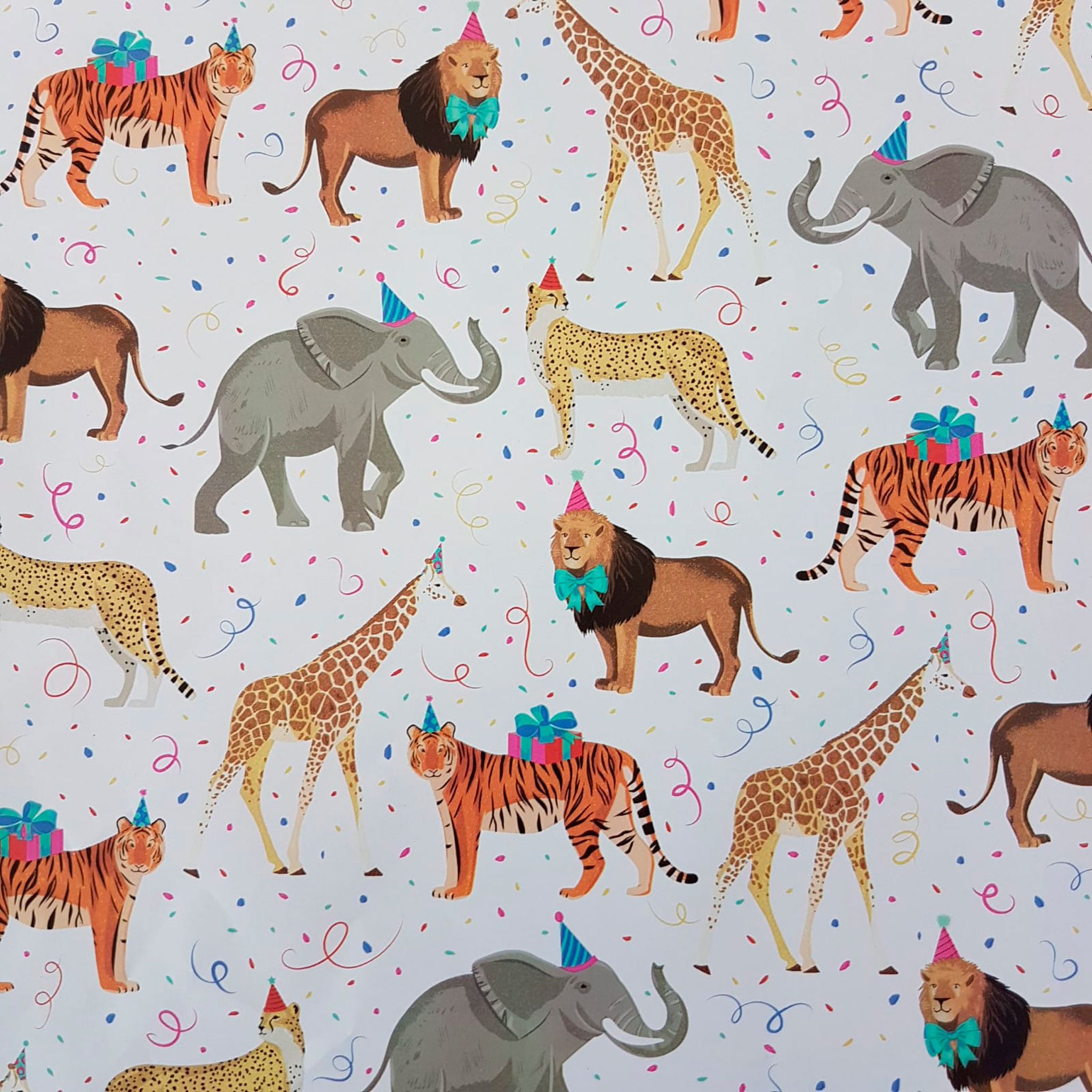 Geschenkpapier mit Giraffe, Elefant, Löwe, Tiger, Löwe, Geschenken, Partyhüten, Luftschlangen und Konfetti Material: Papier, 80 gsm, FSC Zertifiziert - Breite: 70 cm - Длина: 2 m - Packungsinhalt: 1 Geschenkpapier auf der Rolle - Farbe: weiß - bunt: pink, blau, türkis, gelb, orange, braun, grau Rolle mit Einleger, hochwertiges Papier einseitig bedruckt, lässt sich gut falten und aufreißen, knittert nicht Mit dieser Geschenkpapierrolle treffen Sie immer die richtige Wahl. Egal ob zum Geburtstag oder zu anderen Anlässen, dieses Packpapier eignet sich hervorragend zum Verpacken von Geschenken jeder Art. Vor allem Kinder erfreuen sich an dem süßen Muster mit wilden Dschungel - Tieren. Auch zum Basteln kann das Geschenkpapier verwendet werden. Die Farben können aufgrund von unterschiedlichen Monitor Einstellungen vom Foto leicht abweichen