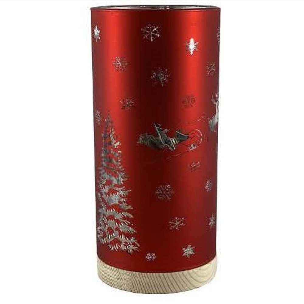 Windlicht "Weihnachtsmotiv" 15er LED Timer rotes Glas 20x9cm Holzfuß SA302